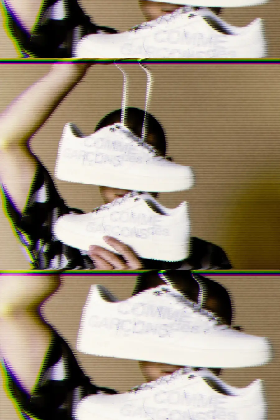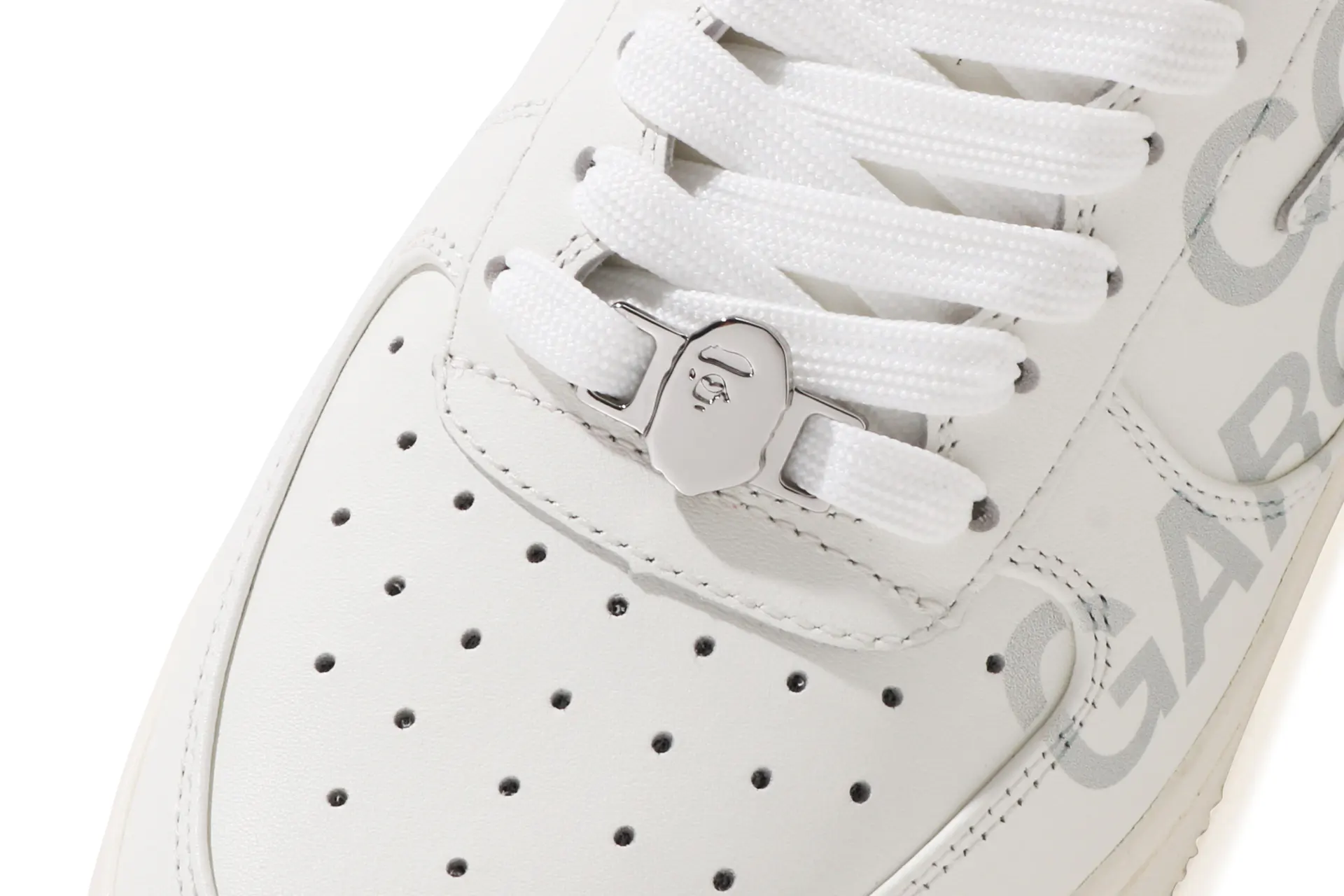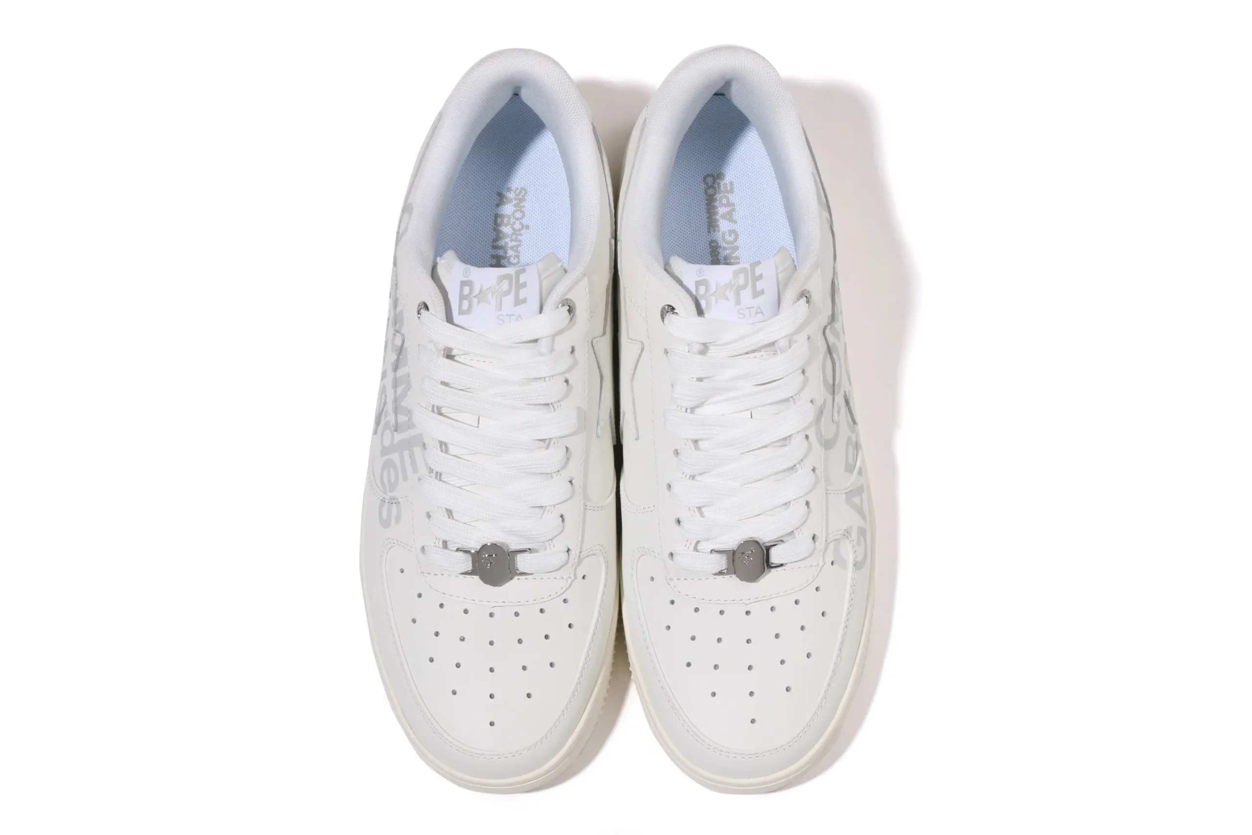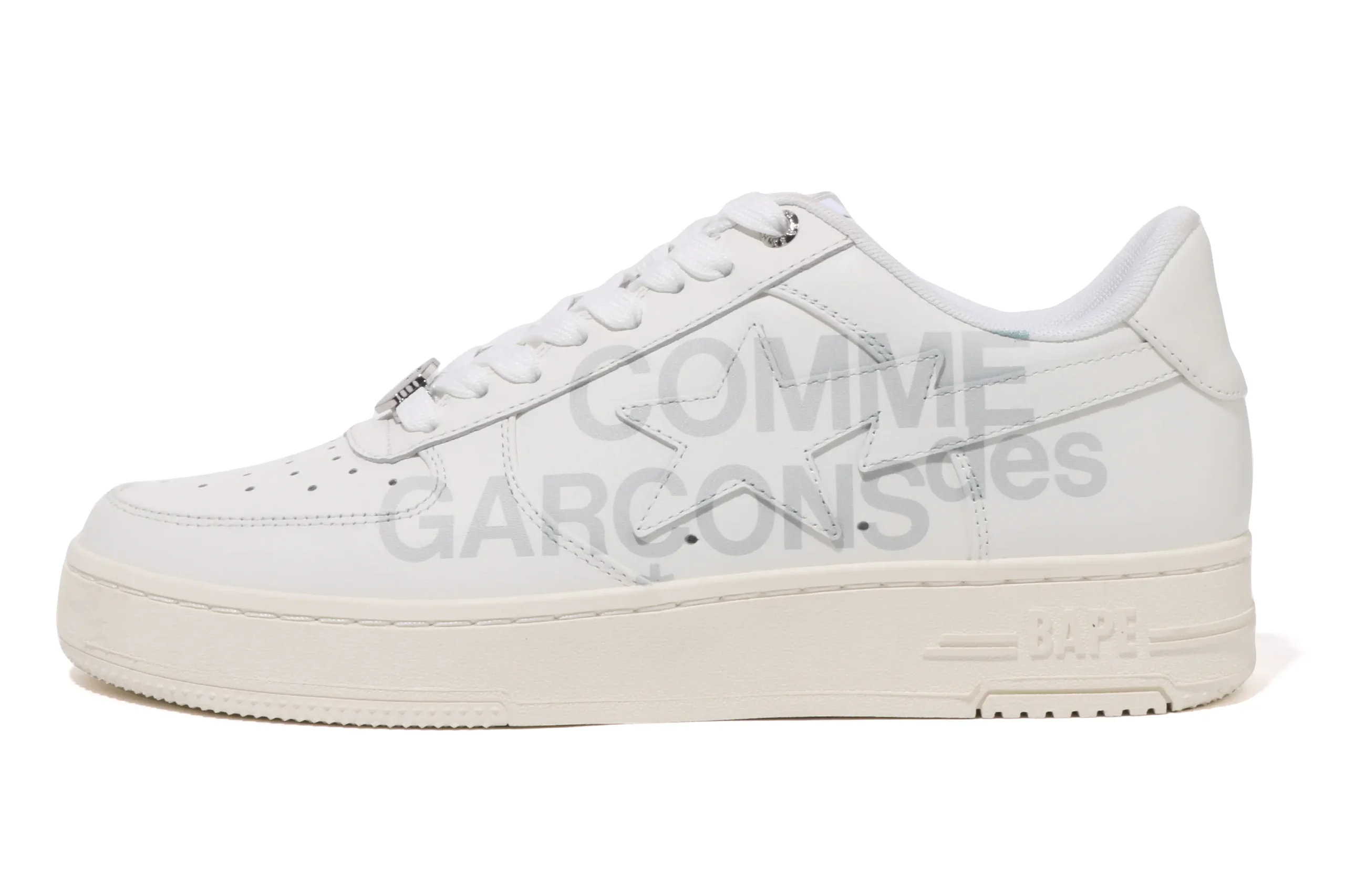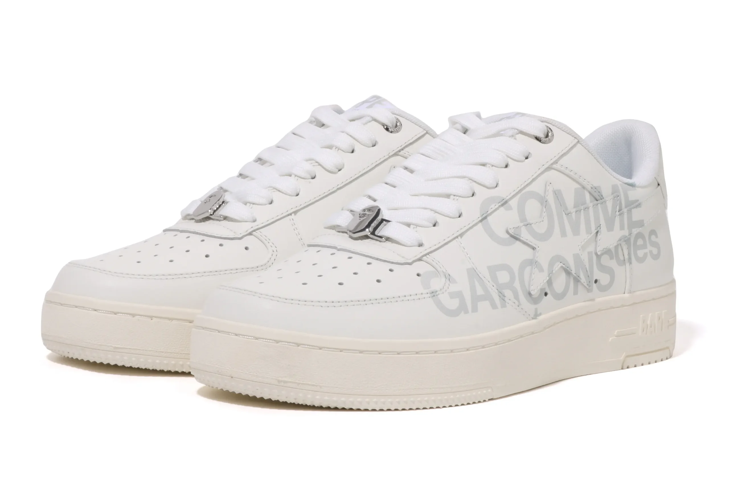 BAPE STA™️は、ホワイトのアッパーに同色で”COMME des GARÇONS”のロゴをプリント。