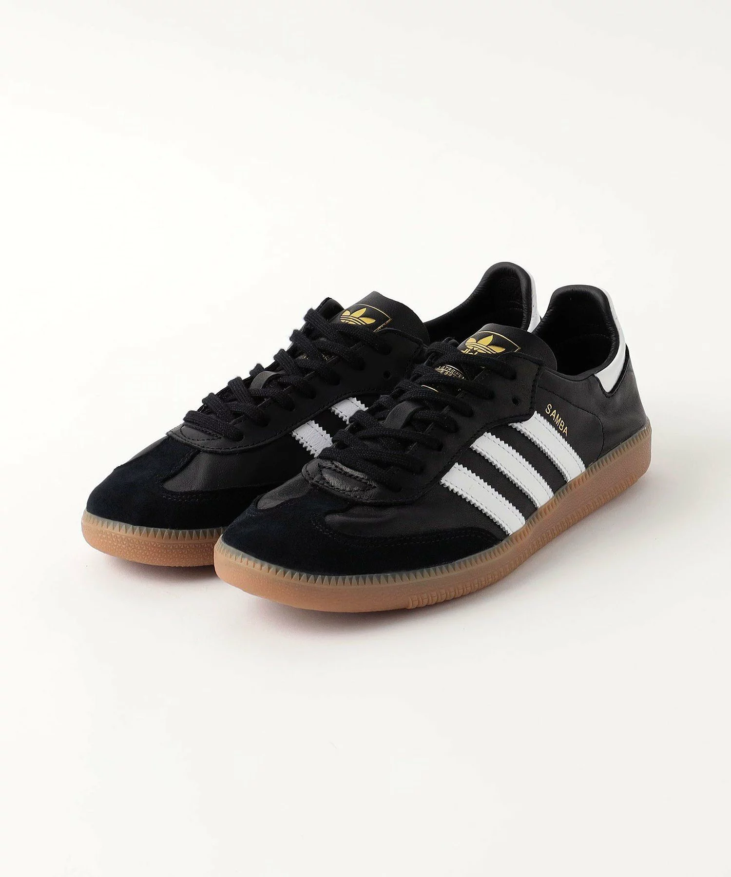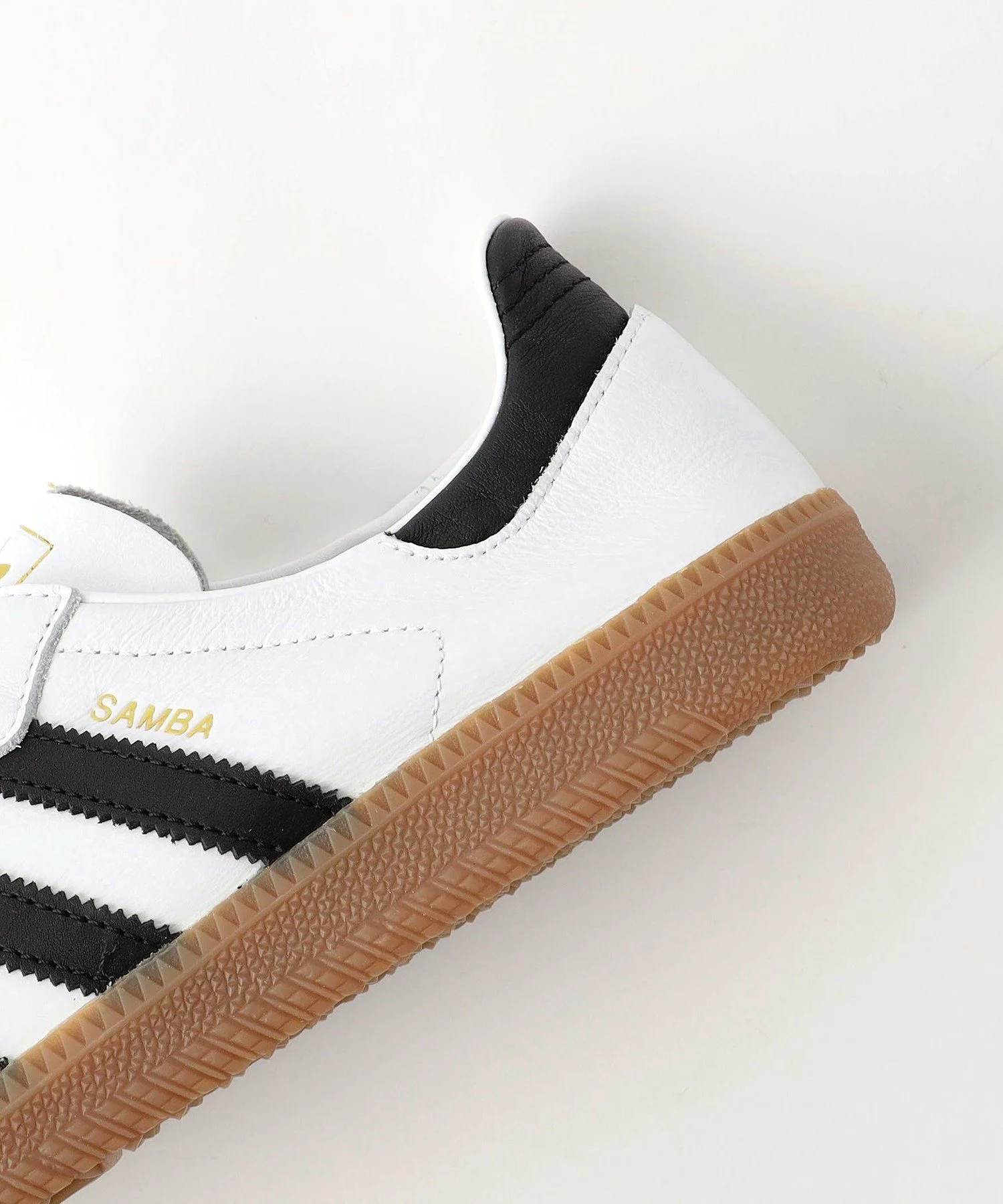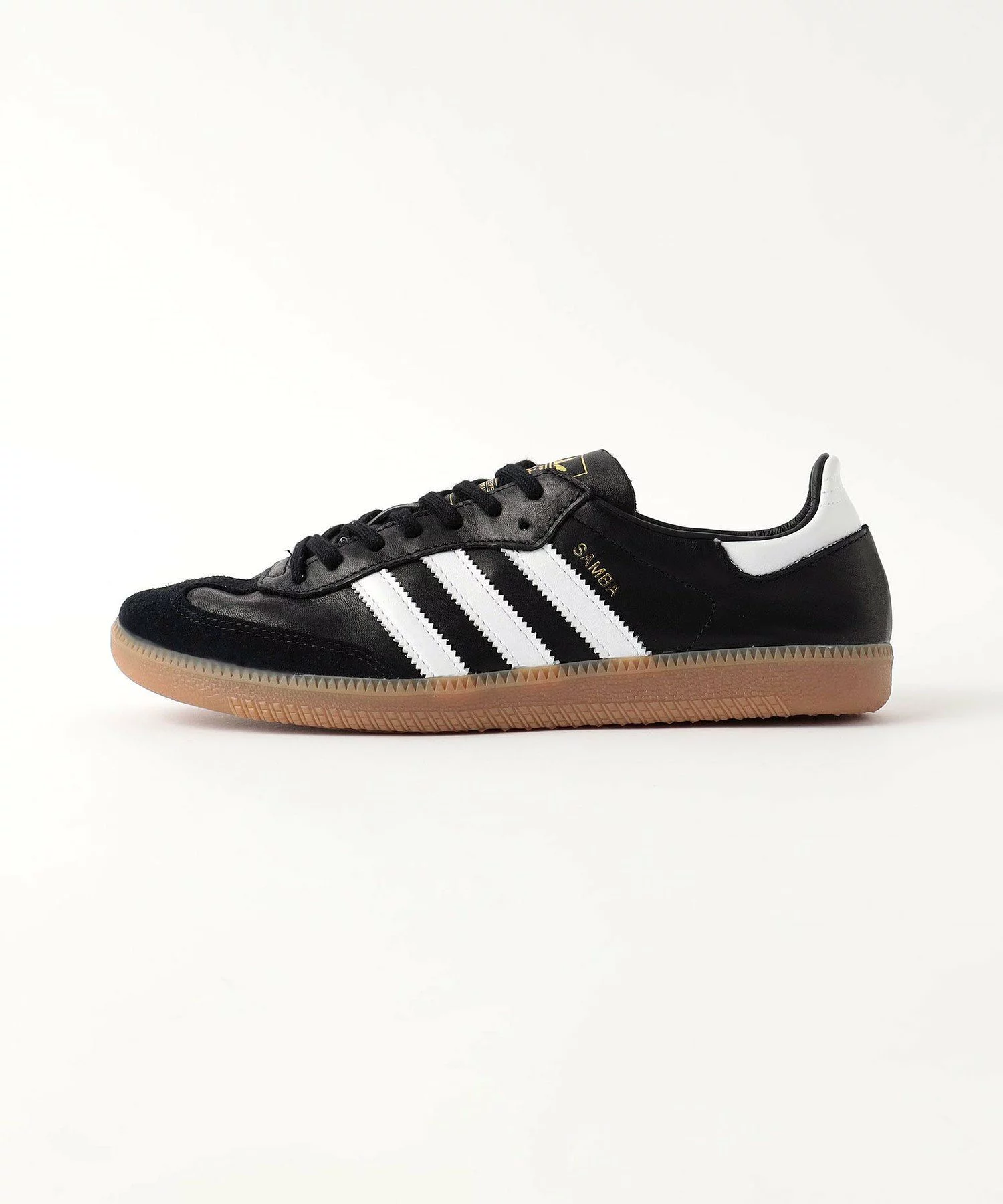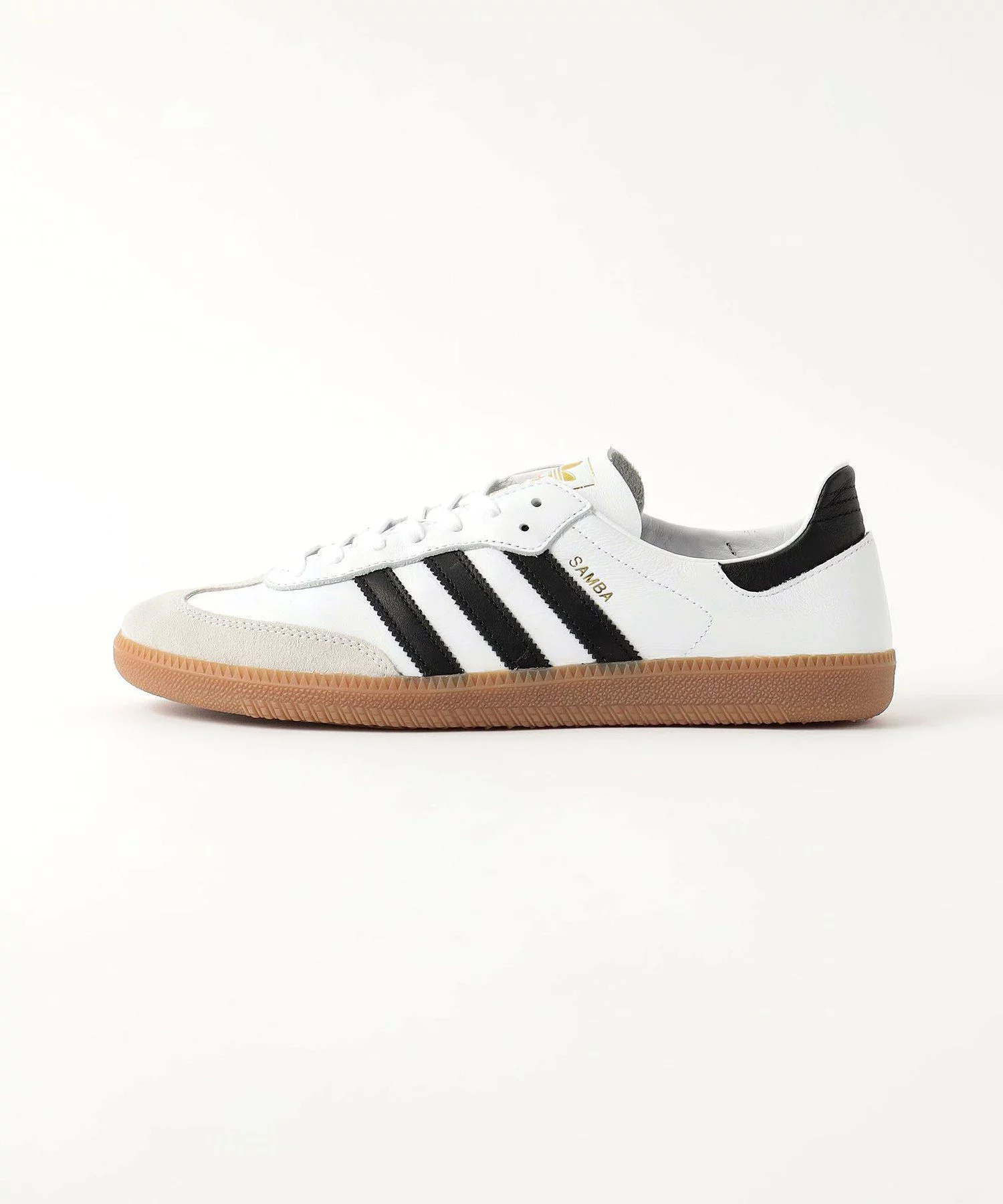 SAMBA の特徴そのままに、シンプルなデザイン、T字型のつま先、レトロなデザインのクラシックなラバーアウトソール、adidas を象徴する3ストライプを備えている。