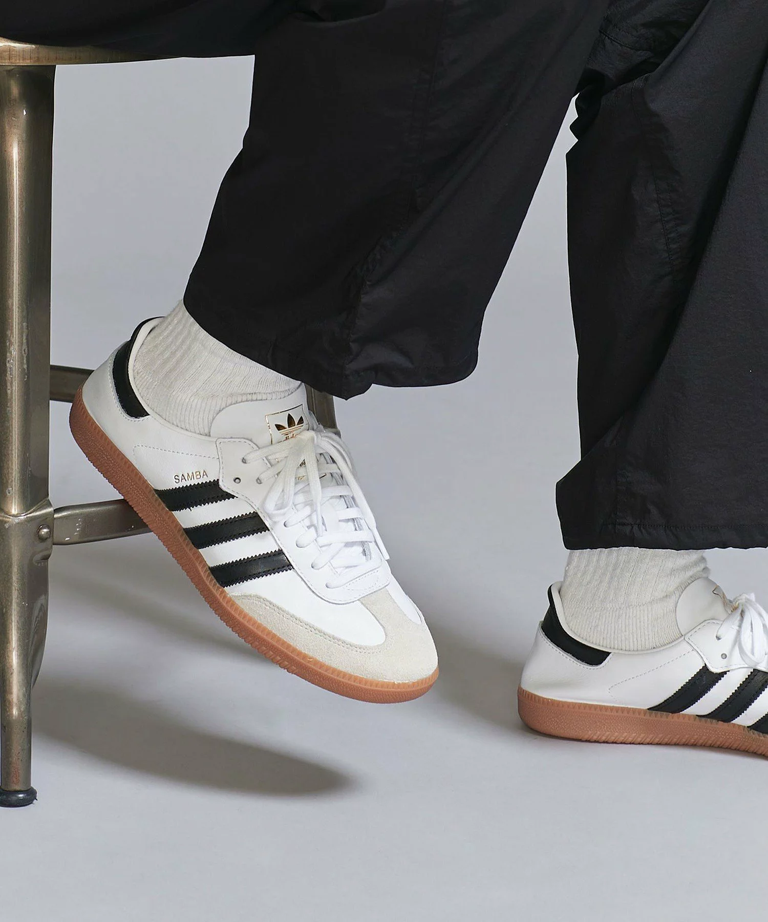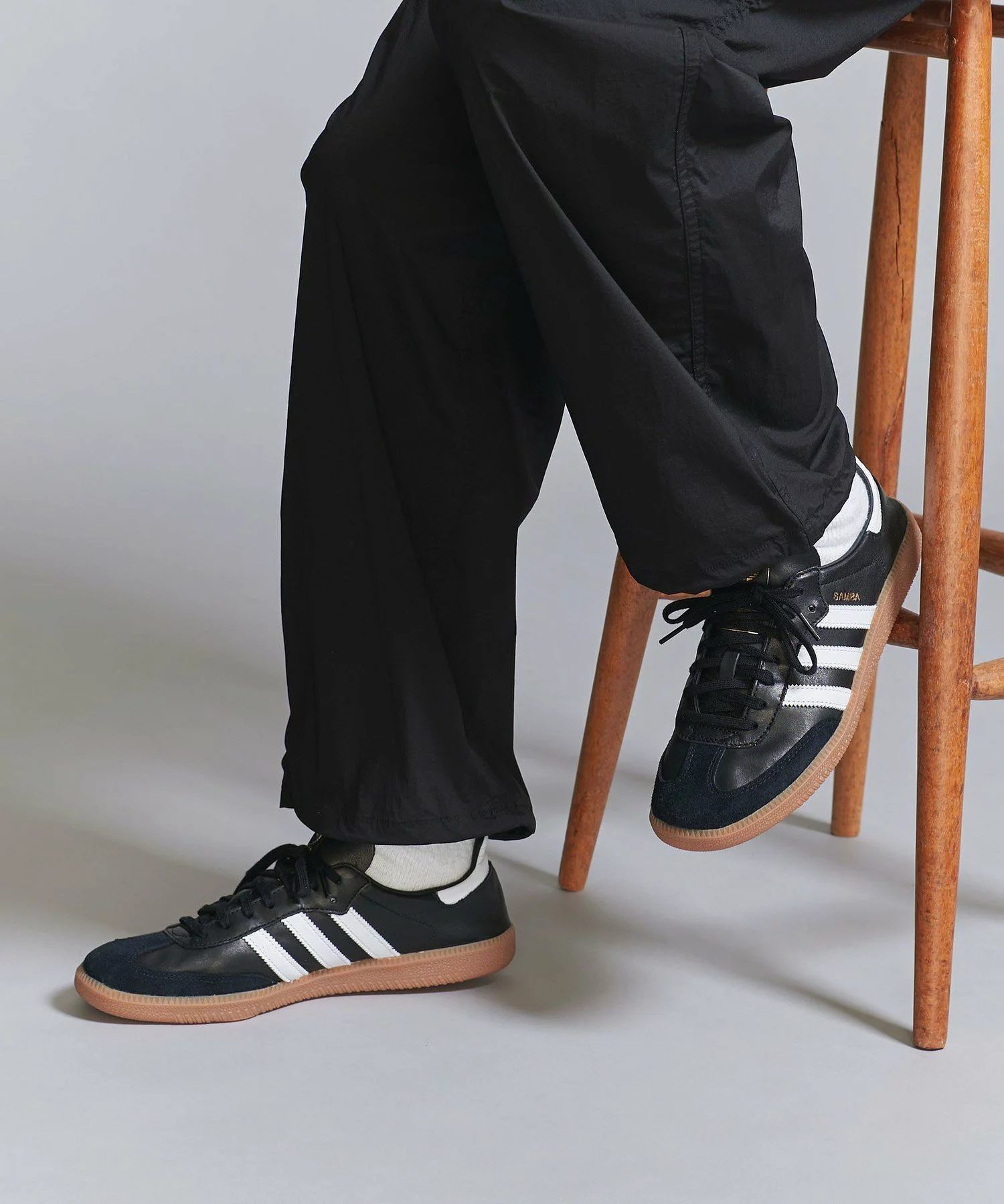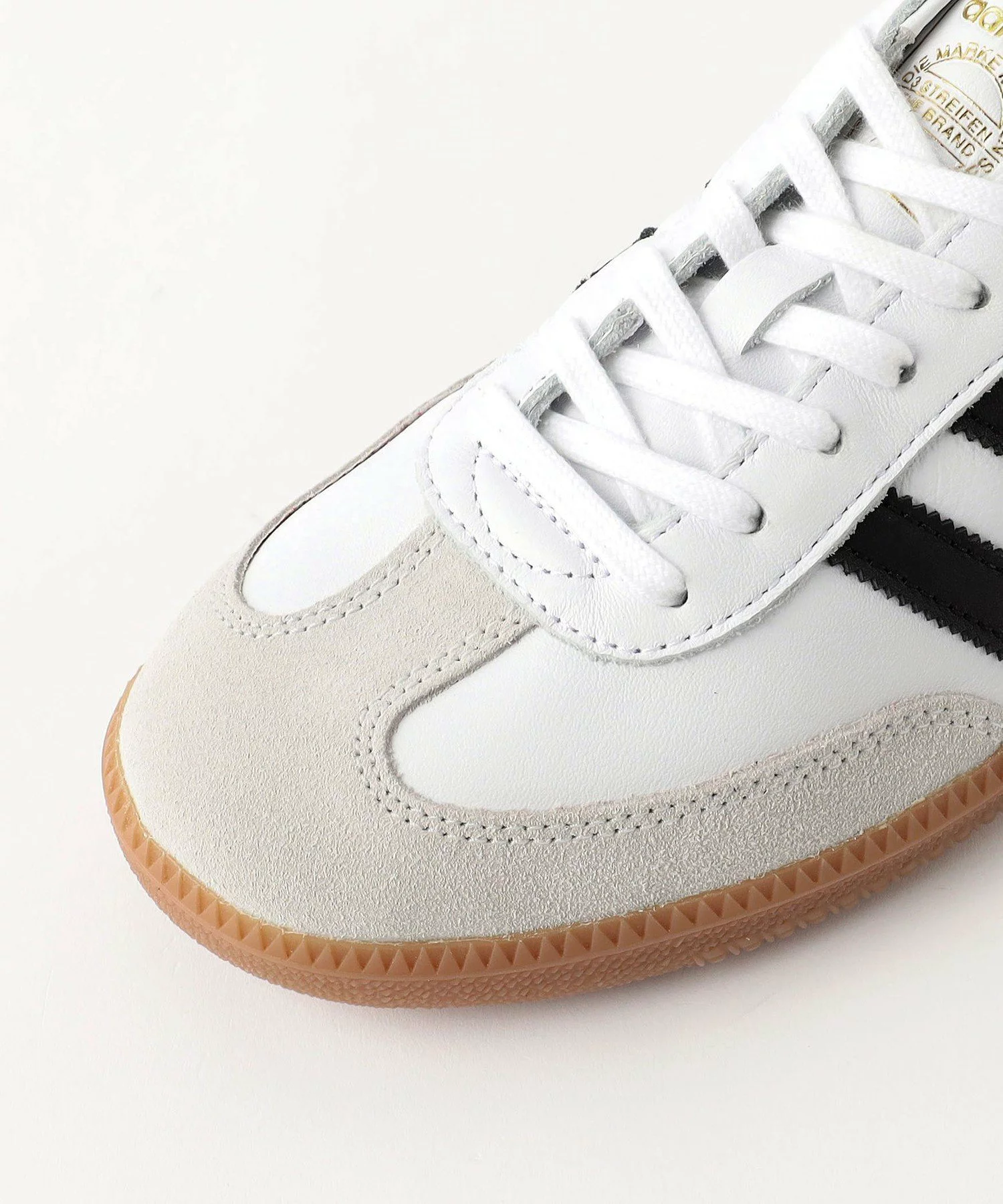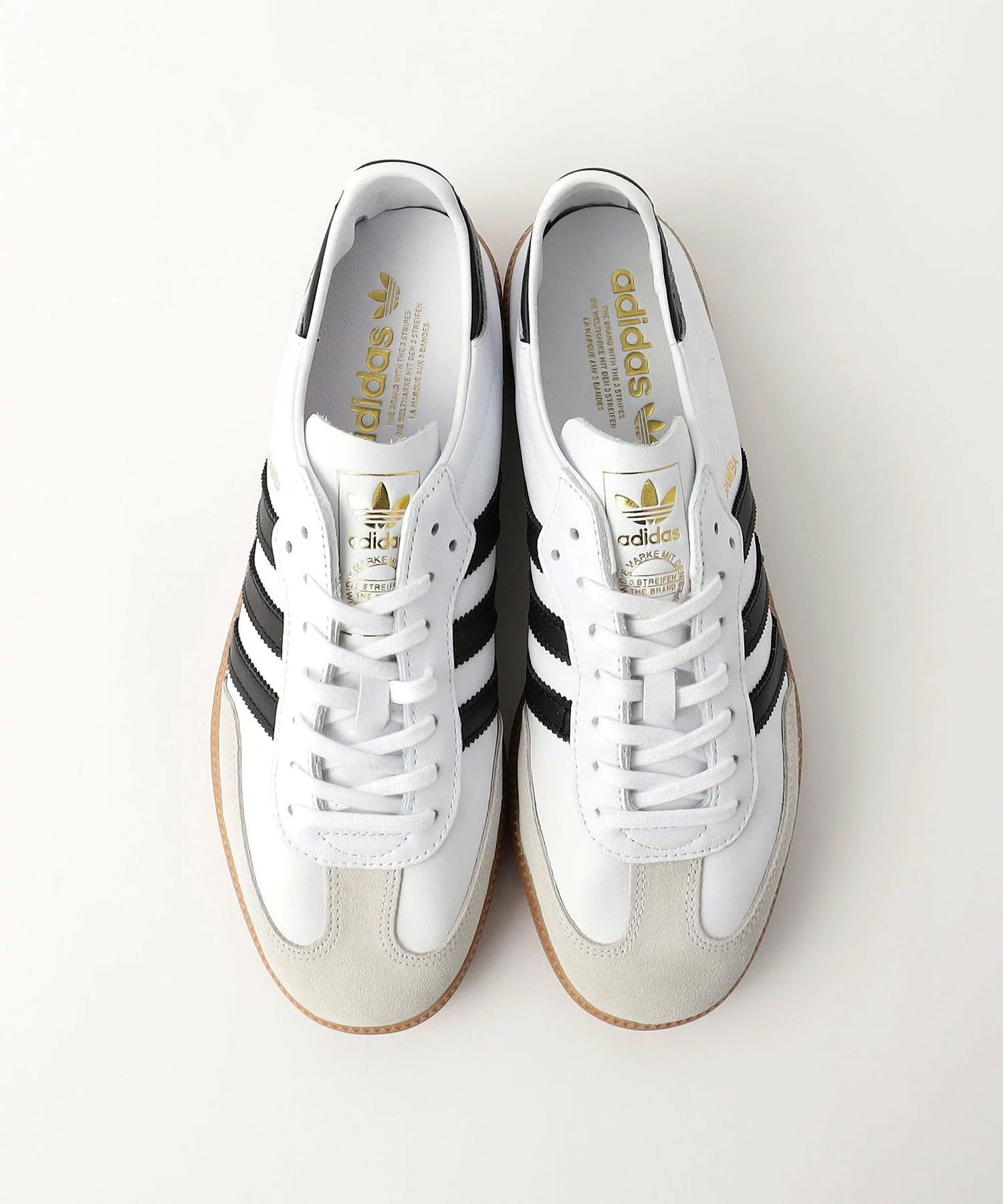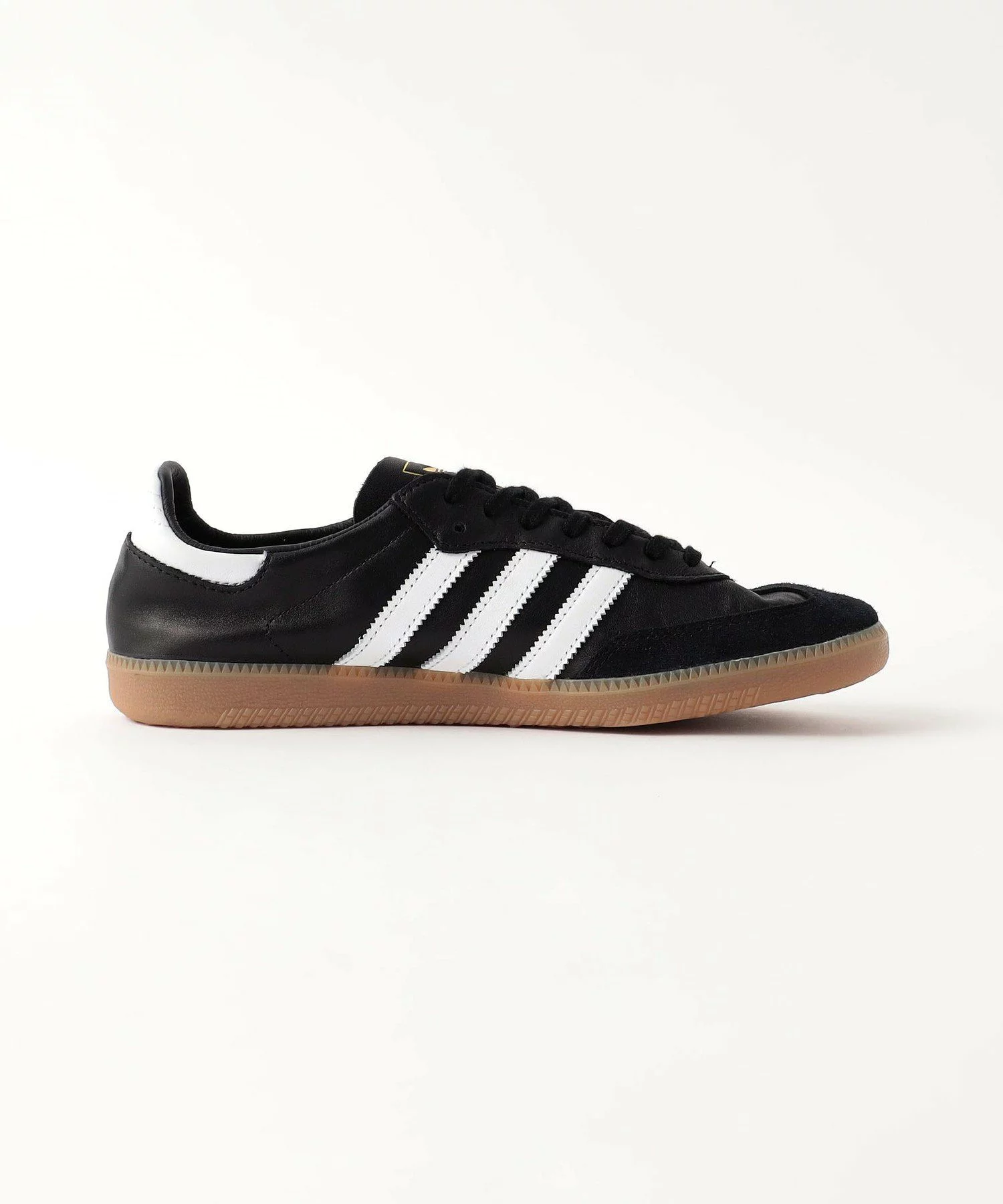 SAMBA の特徴そのままに、シンプルなデザイン、T字型のつま先、レトロなデザインのクラシックなラバーアウトソール、adidas を象徴する3ストライプを備えている。