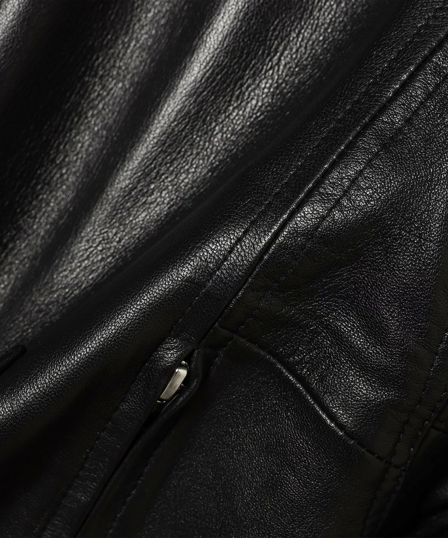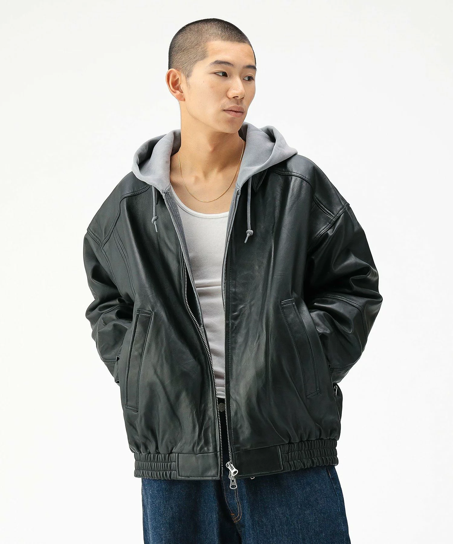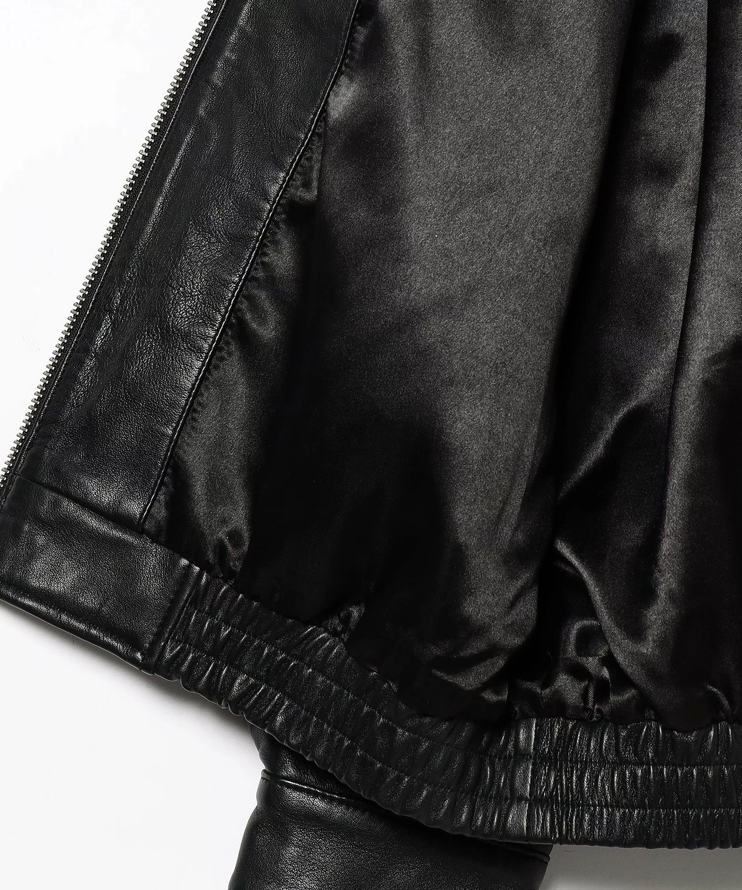 シープレザーを使用したワイドシルエットのレザーブルゾン。