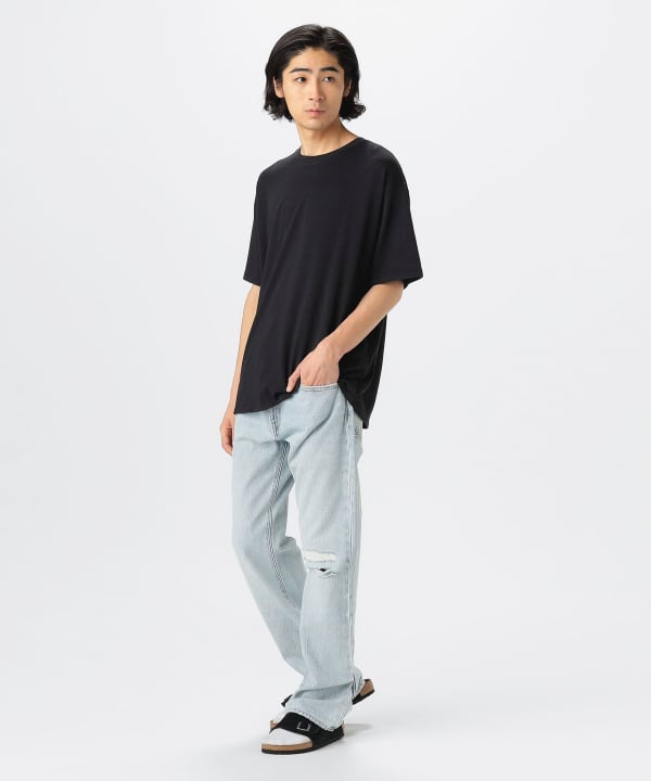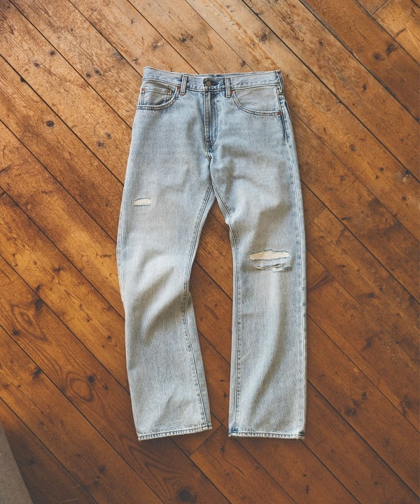 膝部分に大胆なダメージ加工を施し、ピスネームに希少な70年代前半のビッグE仕様を復刻することで、ヴィンテージライクな表情に仕上げた。