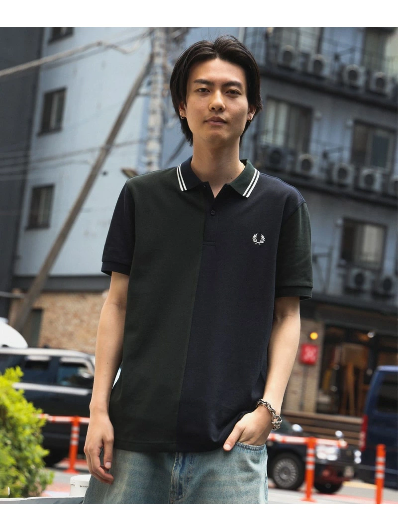 今回は、伝統を受け継ぎ現代に進化した FRED PERRY のポロシャツ M3600 をベースに、左右の配色が異なるクレイジーパターンのパネルワークで表現した BEAMS らしい別注アイテムを展開。