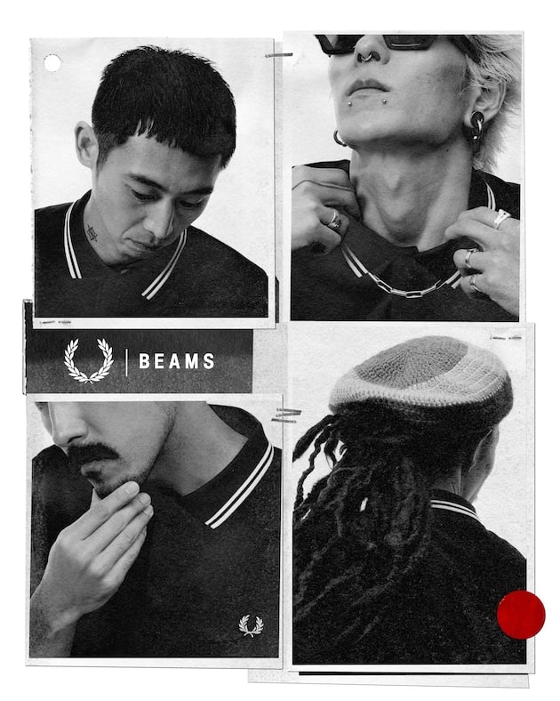 今回は、伝統を受け継ぎ現代に進化した FRED PERRY のポロシャツ M3600 をベースに、左右の配色が異なるクレイジーパターンのパネルワークで表現した BEAMS らしい別注アイテムを展開。