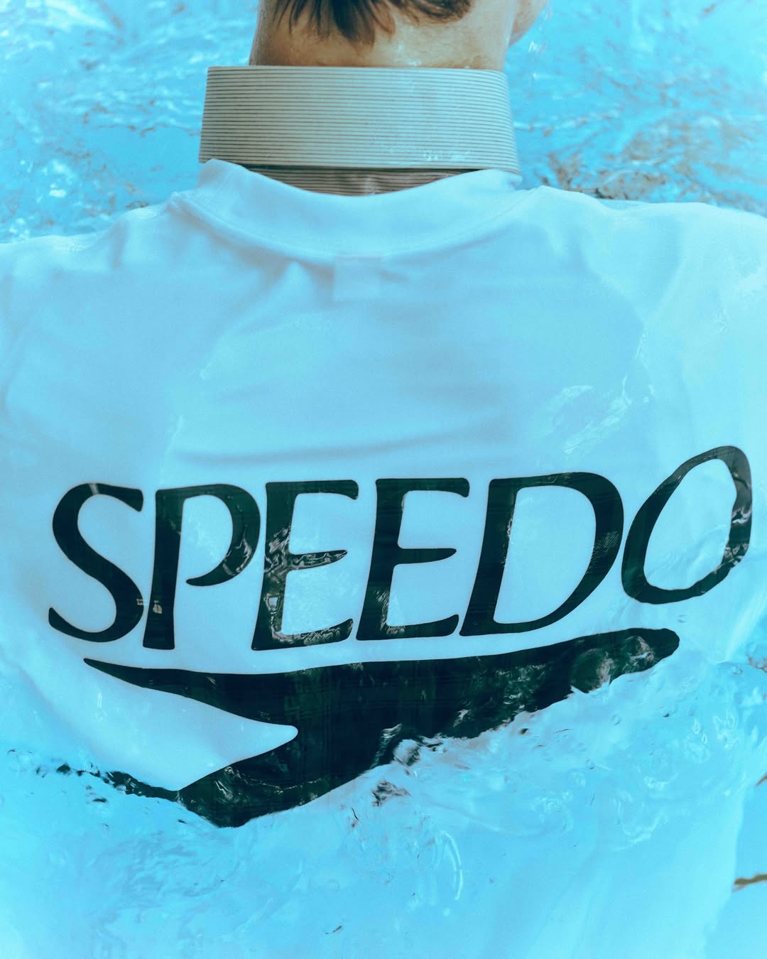 今シーズンは、定番の水陸両用で使えるスイムショーツや Speedo のロゴを背面に大きくプリントしたラッシュTシャツをはじめ、はっ水性とUV機能を兼ね備えたキャップ。
