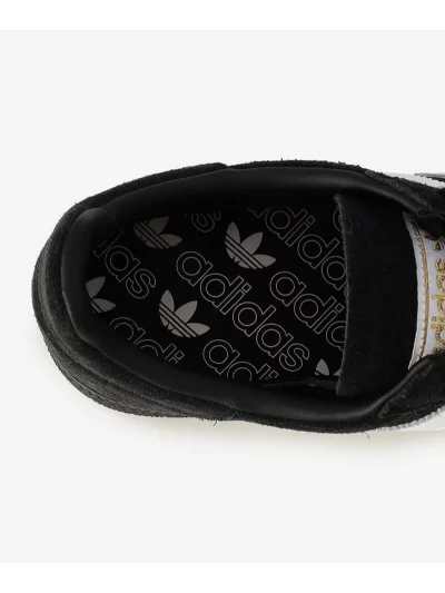 アッパーに合わせたブラックのソールを搭載し、コントラストの効いたスリーストライプスが採用。