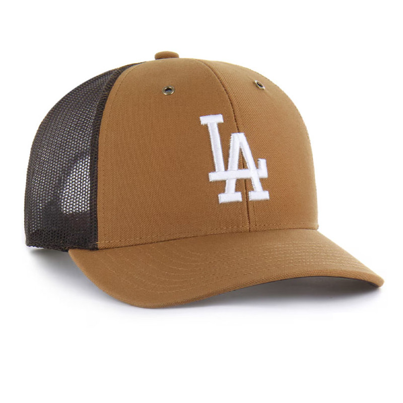 カーハートの代名詞とも言えるダック地のフロントパネルにはドジャースのLAロゴを配置し、バックにはアイコニックなCロゴをデザイン。
