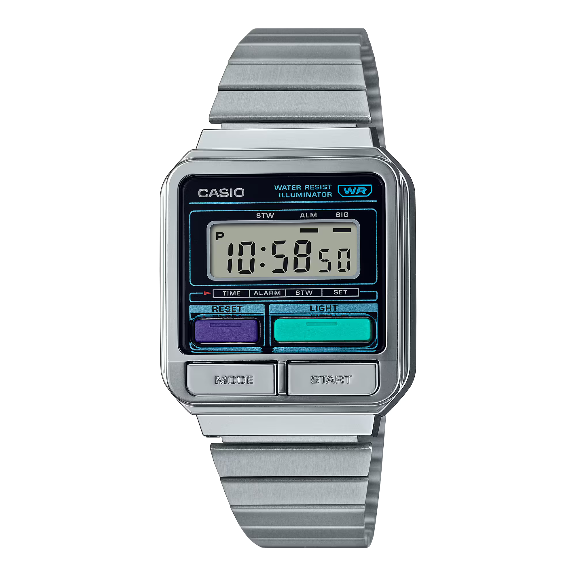 エッジの効いたレトロフューチャーなデザインが特徴の CASIO(カシオ) の CASIO CLASSIC(カシオ クラシック) より『A120WE-1AJF』が発売。