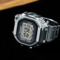 DW-6900TR-1JR は、6900シリーズのデザインアイコンであるフロントボタンをメタル化し、ミラー仕上げの素材表面に刻まれた「G」マークが力強い存在感を演出。