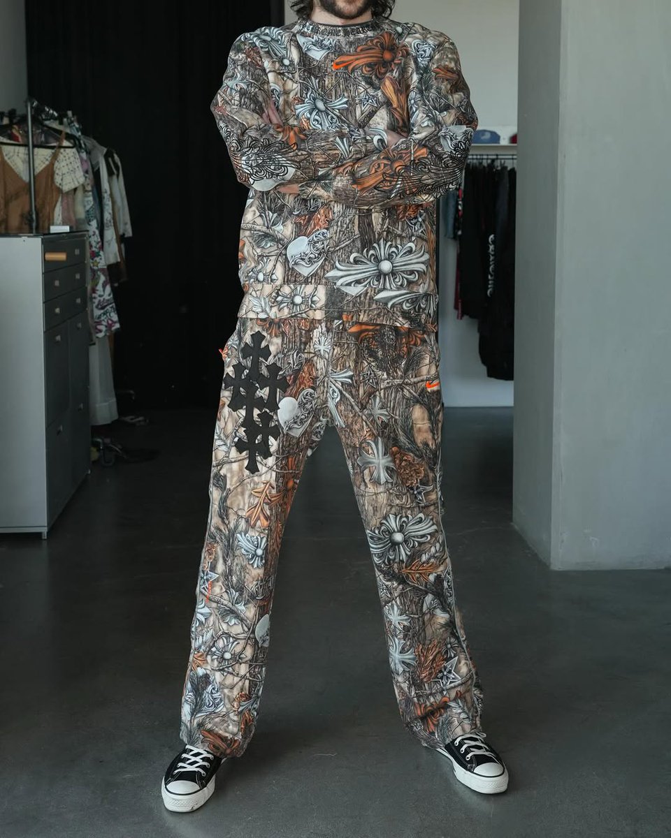 今回登場したのは、Chrome Hearts の象徴的なクロスモチーフや NIKE のスウッシュロゴが落とし込まれたパファージャケット、フーディ、Tシャツ、パンツ、キャップ。