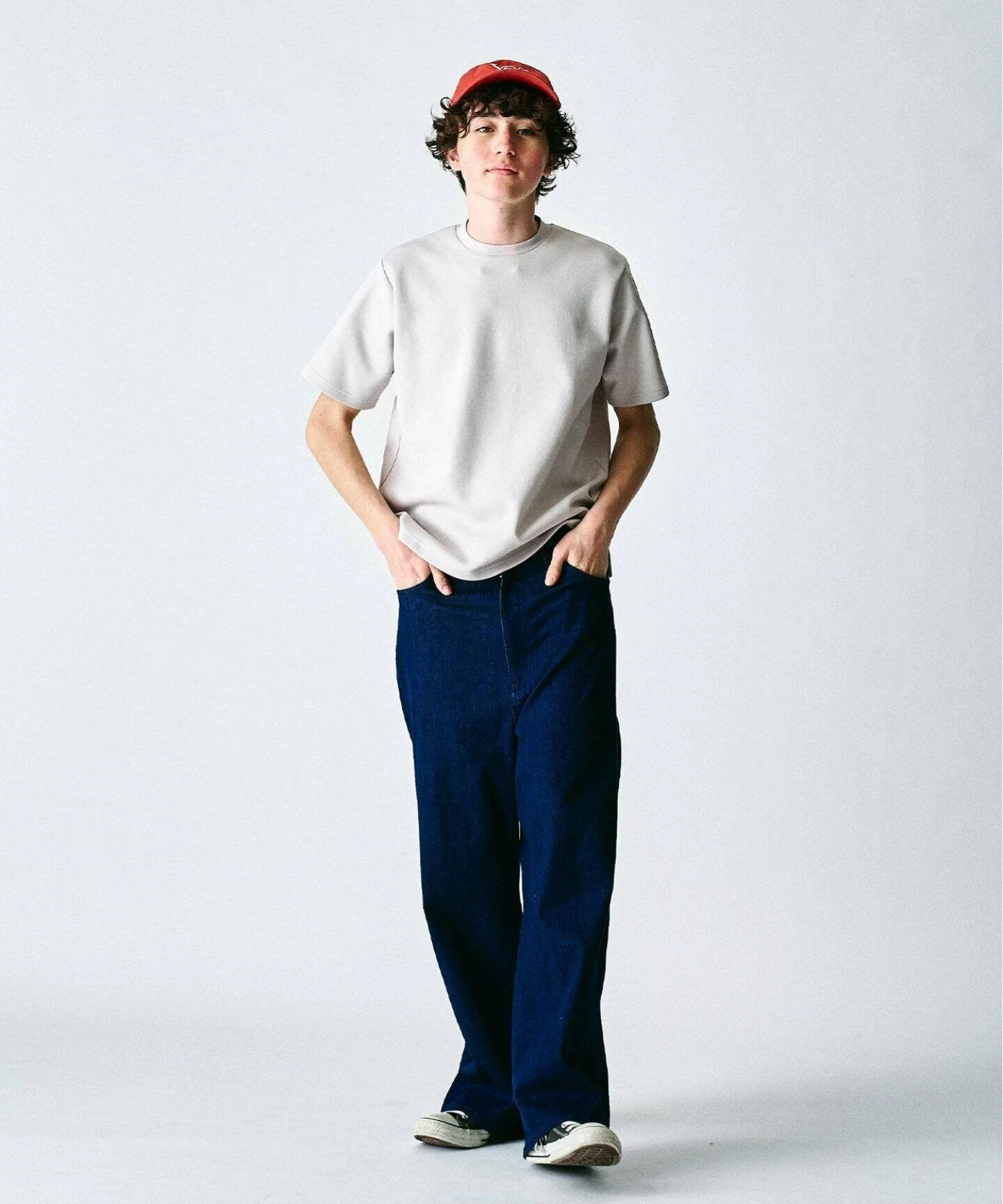 コットン100%のような表情ながら、”接触冷感&速乾”機能を持たせたドライな肌触りは心地良い素材感。