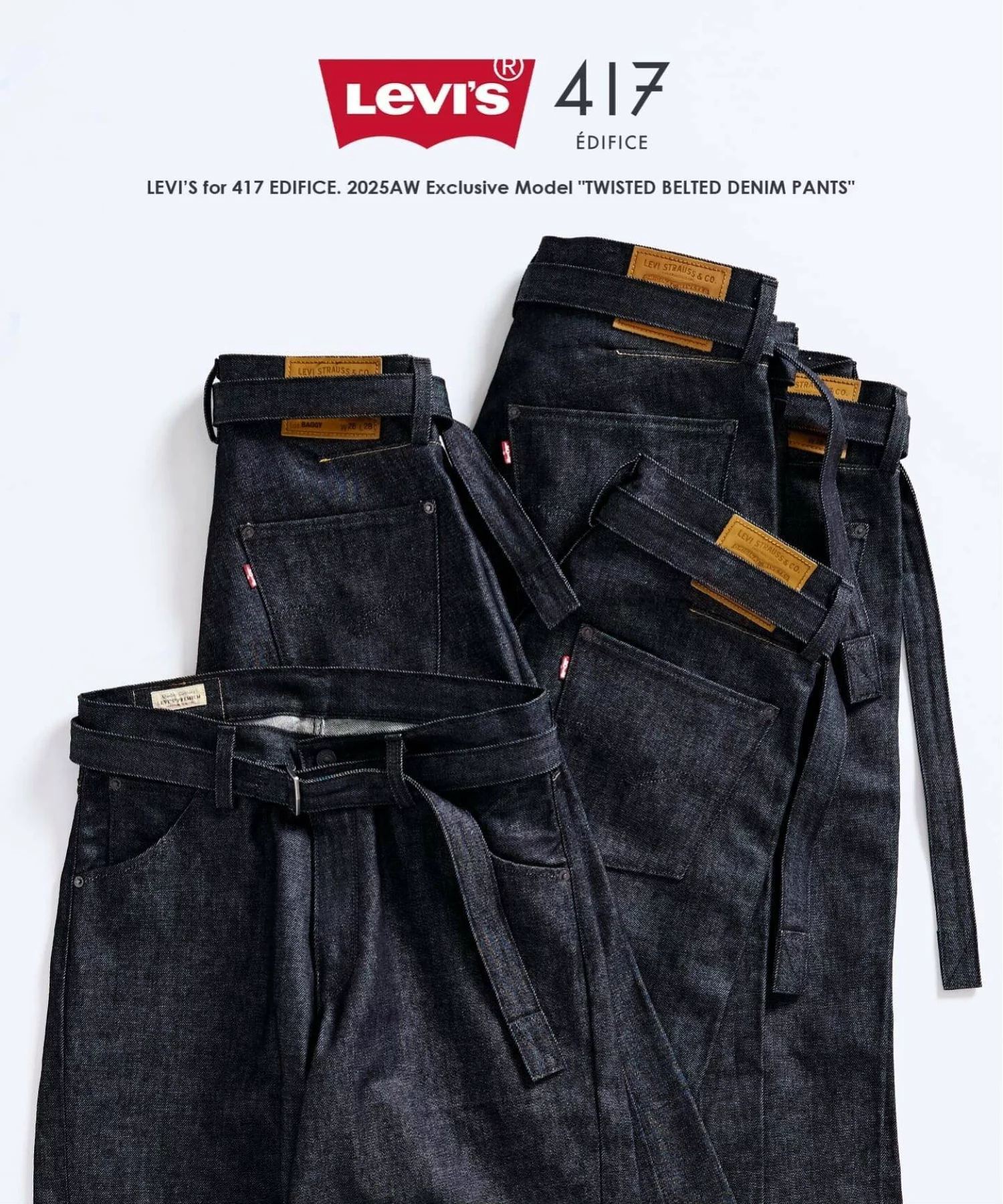 417 EDIFICE(417 エディフィス) から Levi’s®(リーバイス) の新作別注モデル『Twisted Belted Denim Pants(ツイステッド ベルテッド デニムパンツ)』が登場。