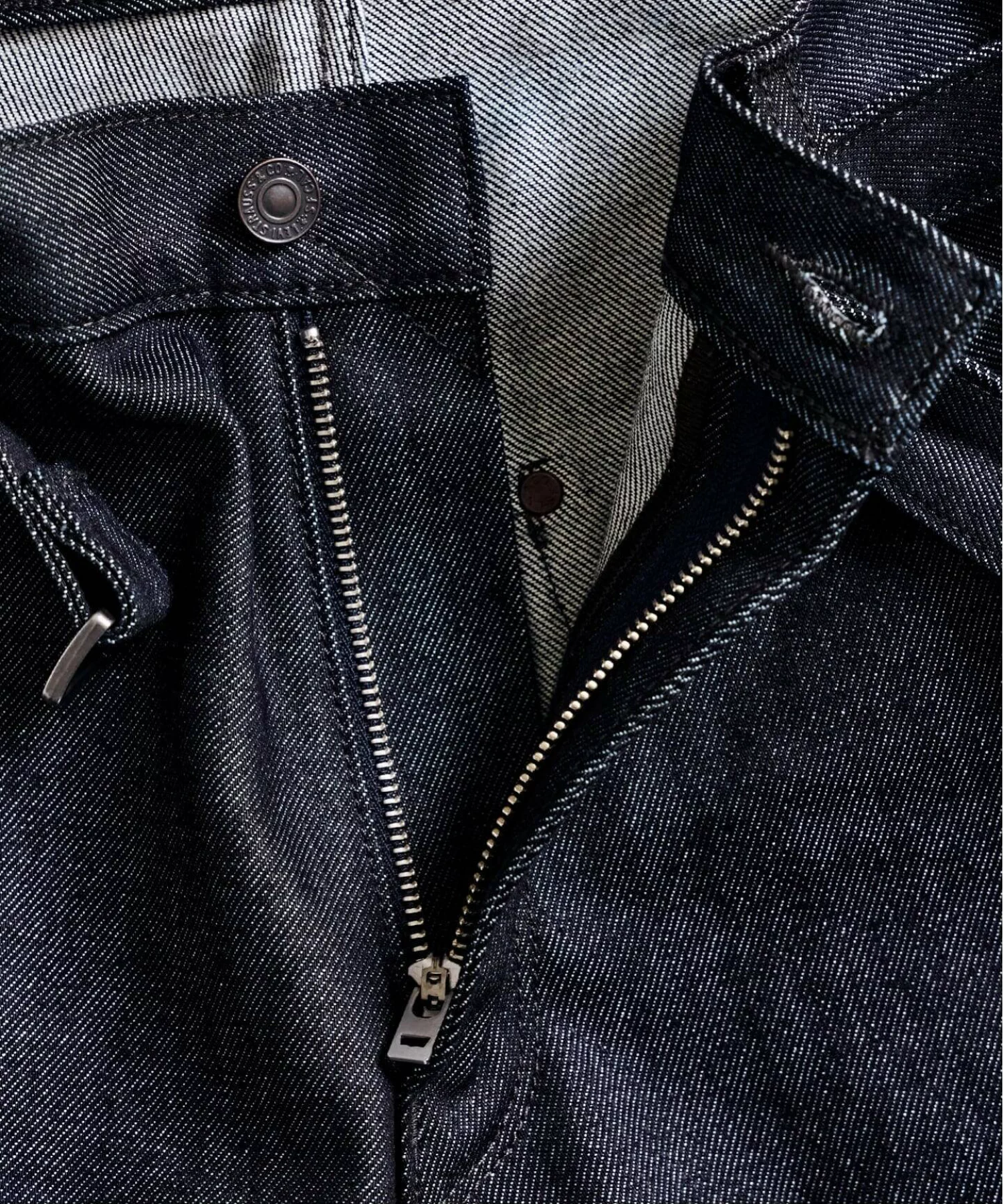インラインにはないリジッドデニムを採用し、ステッチは身生地に近いグレートーンで統一。