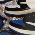 今回の fragment design × NIKE によるコラボ MIND 001 は、オールブラックのシューズに fragment design のシグネチャーカラーであるロイヤルブルーをアクセントとして配置。