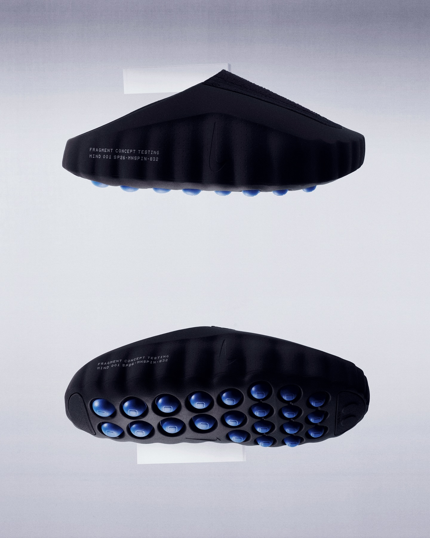 fragment design エディションの NIKE MIND 002 は、ミッドソールに“FRAGMENT CONCEPT TESTING MIND 002 SP26-MNSFIN-351”が刻まれている。