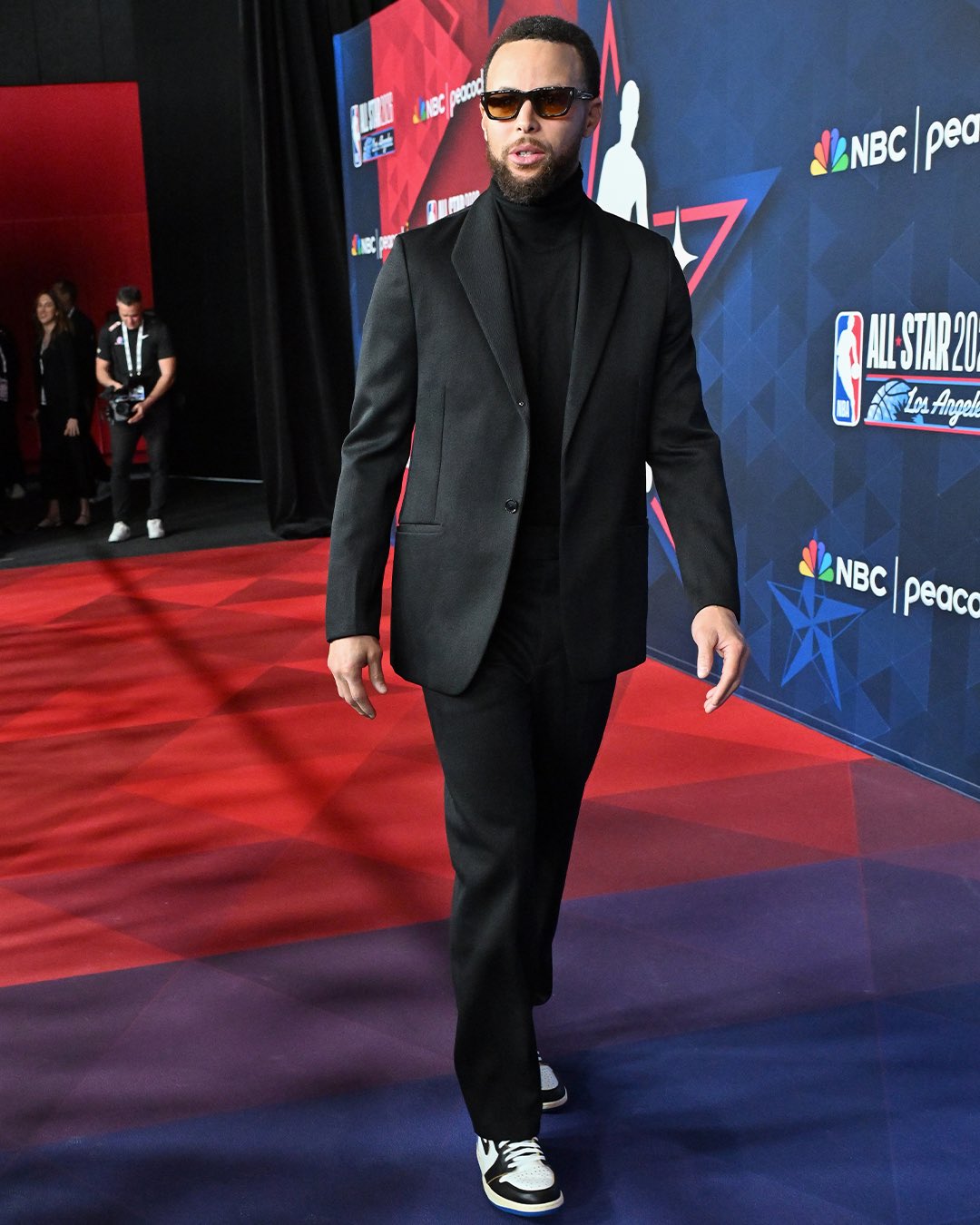 Stephen Curry が、fragment design × UNION × NIKE AIR JORDAN 1 “Varsity Red/Sport Royal” を着用し NBA オールスターゲームに登場。
