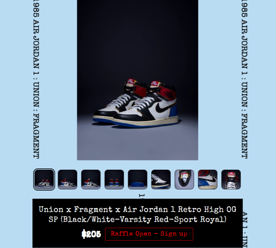 ・2026.02.13 UPDATE:UNION オーナー Chris Gibbs によると fragment design × UNION × NIKE AIR JORDAN 1 は “Royal Blue/Black” が最も手に入れやすいとの事。