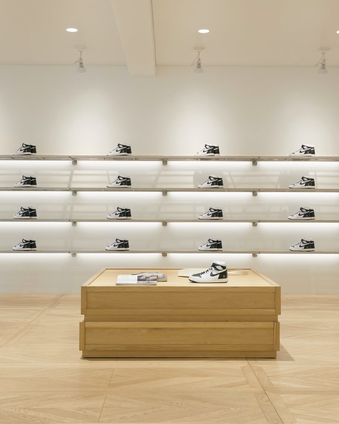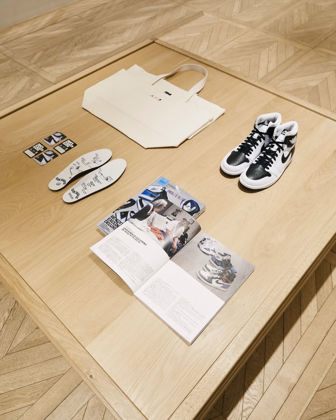 現地スタッフが fragment design × UNION × NIKE AIR JORDAN 1 “White/Black” を着用している姿も確認。