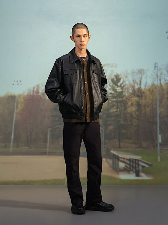 今回の2025年秋冬のコレクションは、高橋 が描きおろしたレオパード柄をデザインしたリバーシブルで着用できるブルゾンや、25年春夏コレクションで登場した架空のハンバーガーショップ「ノイズバーガーショップ」の新グラフィックをプリントしたヘビーウェイトスウェット、25年秋冬コレクションの特徴的なディテールであるシガレットポケットをデザインしたユーティリティパンツなど、定番アイテムの新たな一面を楽しめるラインナップに。