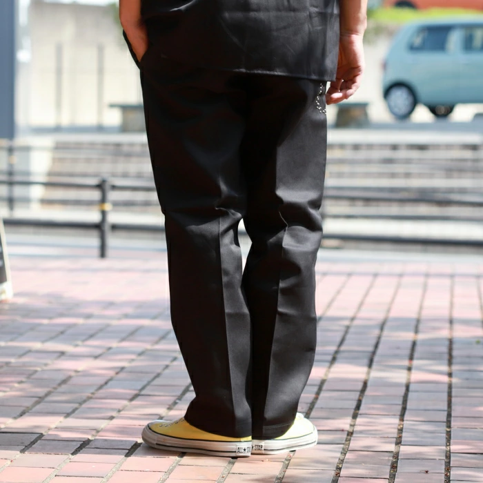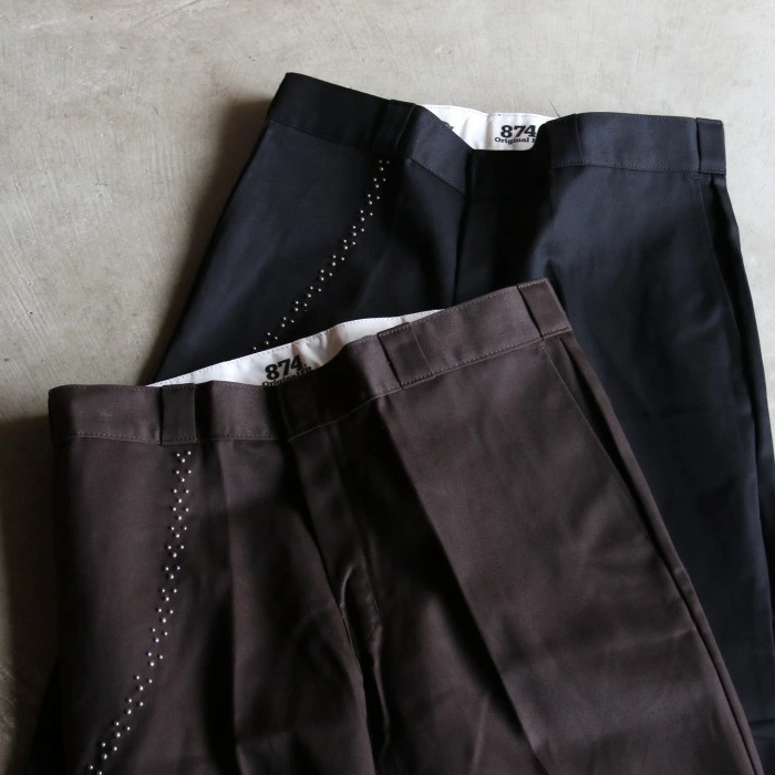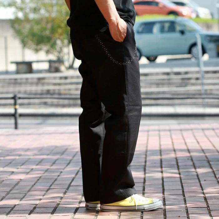 Dickiesの定番874に、矢をモチーフにしたアロースタッズをウォレットチェーンのようにデザインしたHTCならではのスタッズワークが目を引くシンプルながらも存在感のあるデザイン。