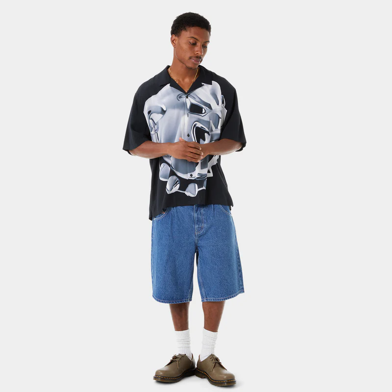HUFチームライダーのBRAD CROMERとデザインしたバギーフィットのデニムショートパンツ
