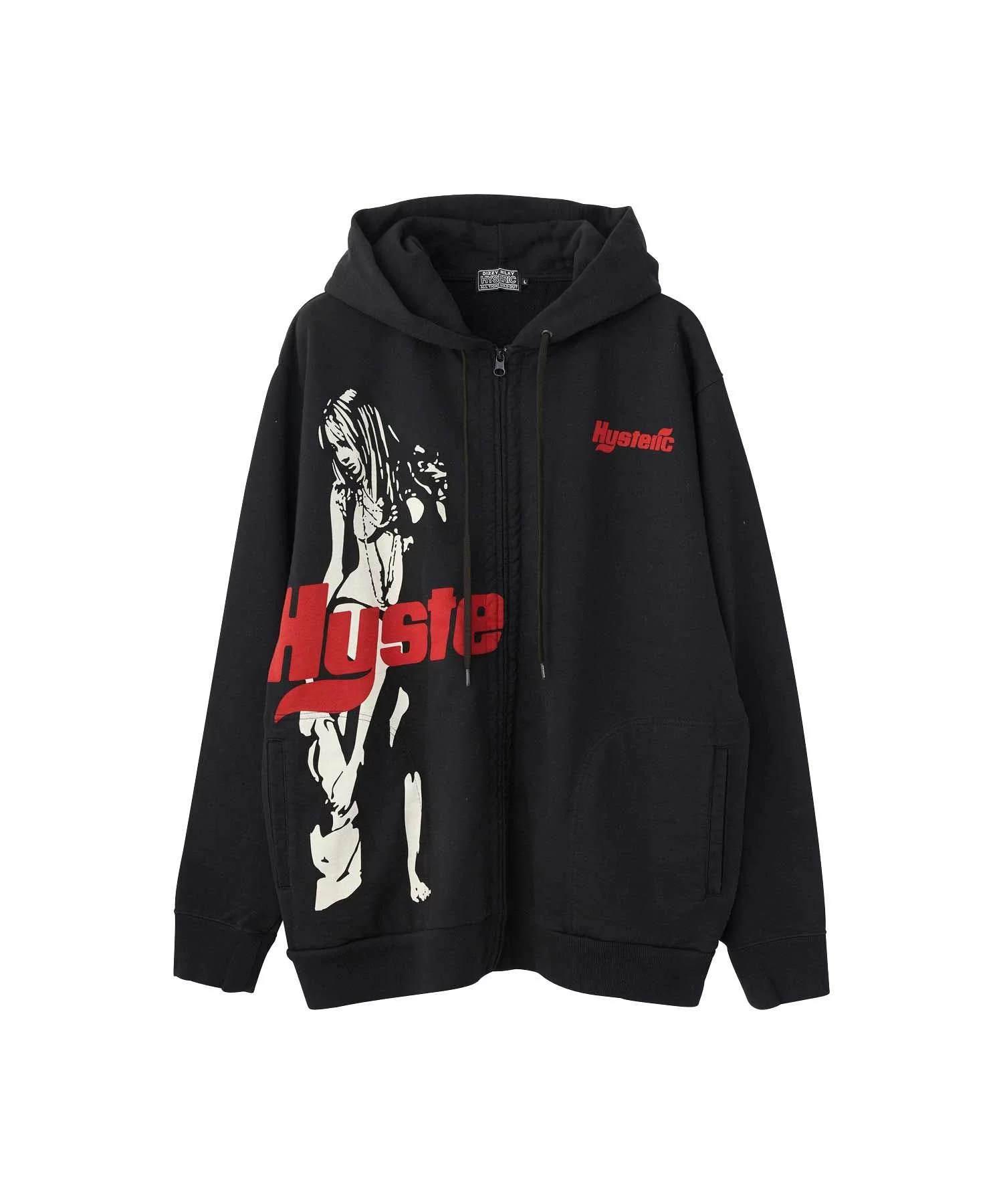定番の HYSTERIC TIMES とキャラクター感が強いロゴを組み合わせ、大きくプリントを施したインパクトのあるデザインのパーカー。