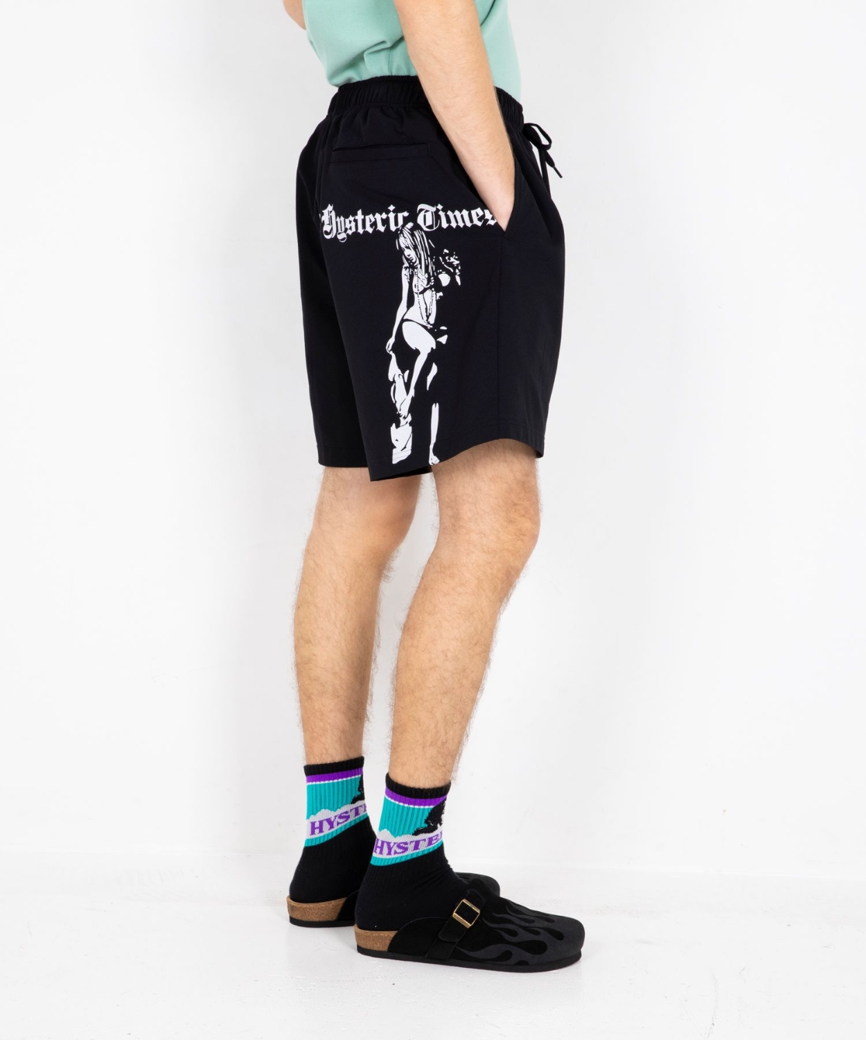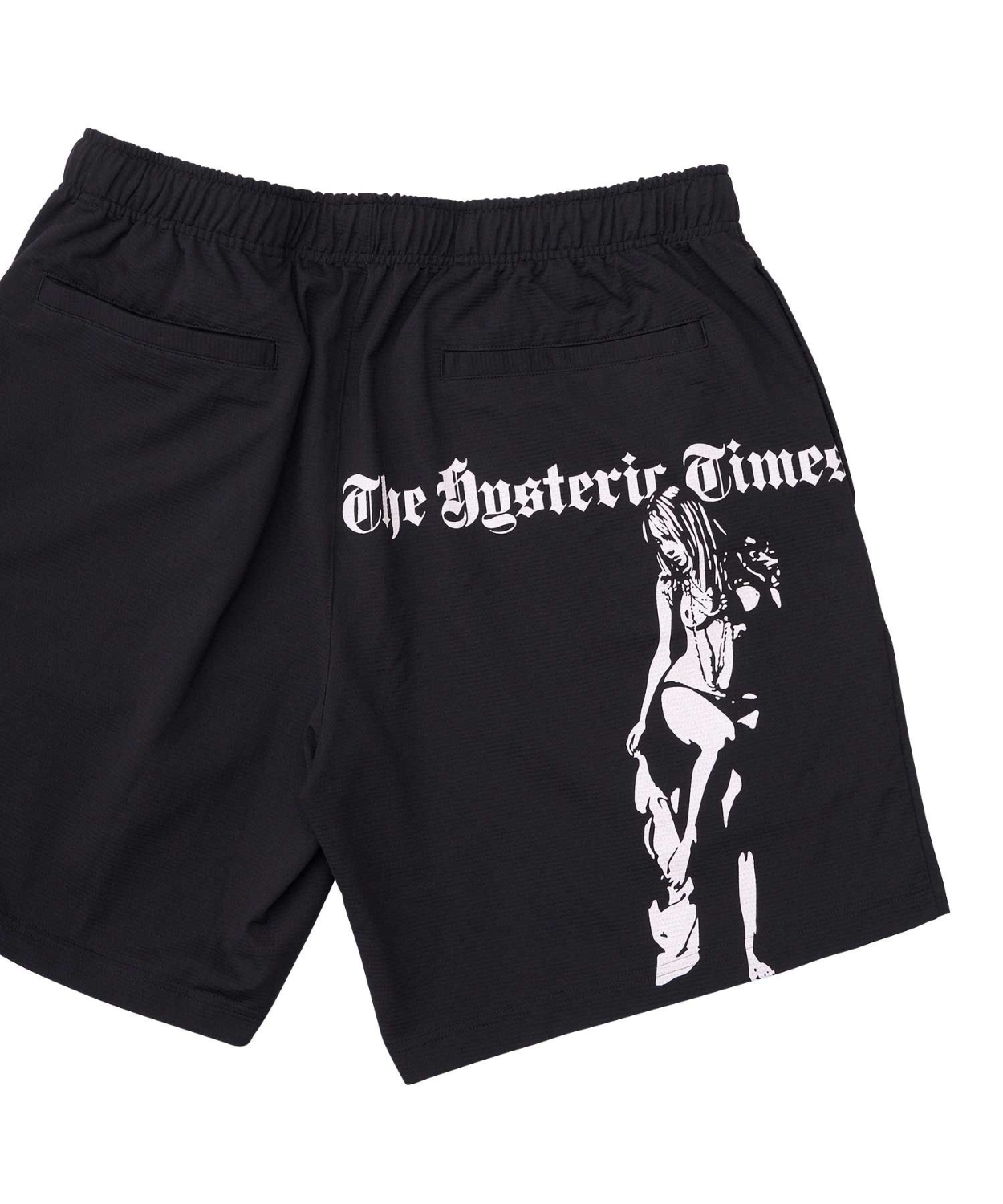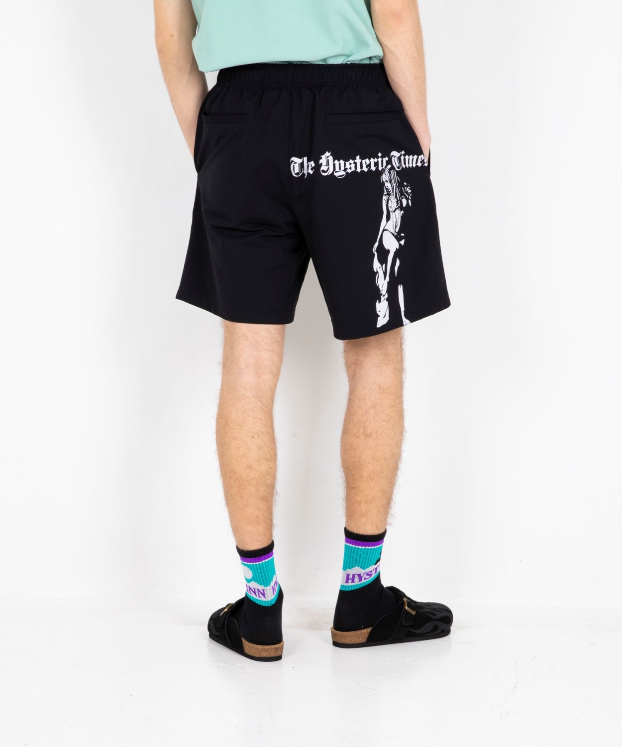 後ろ身頃の HYSTERIC TIMES のモチーフがインパクトのあるショーツ。