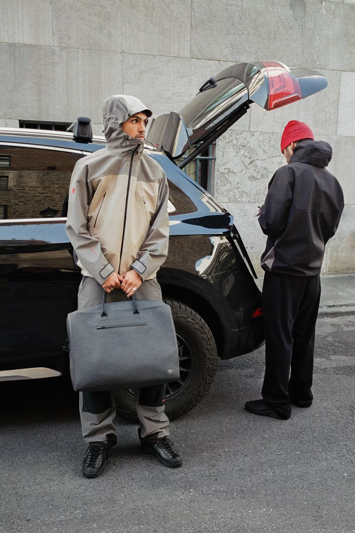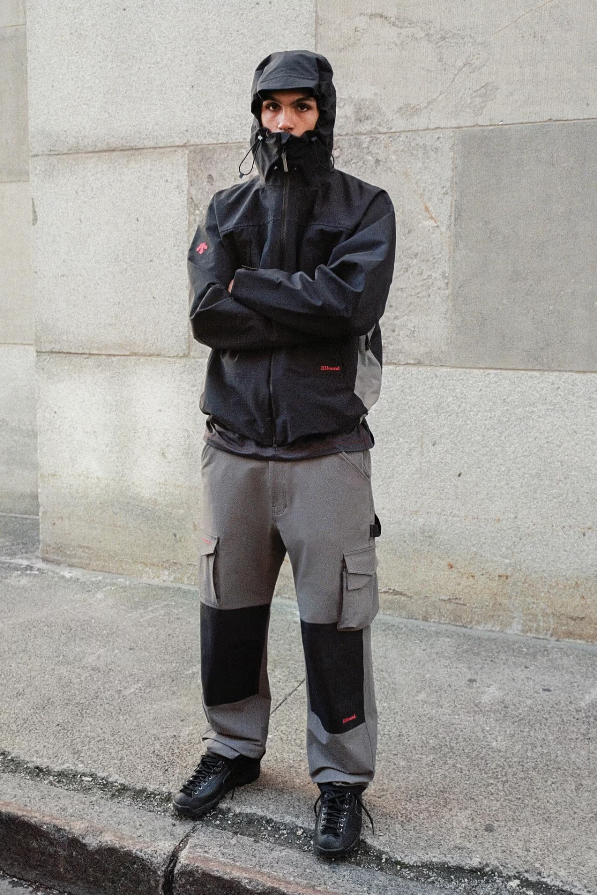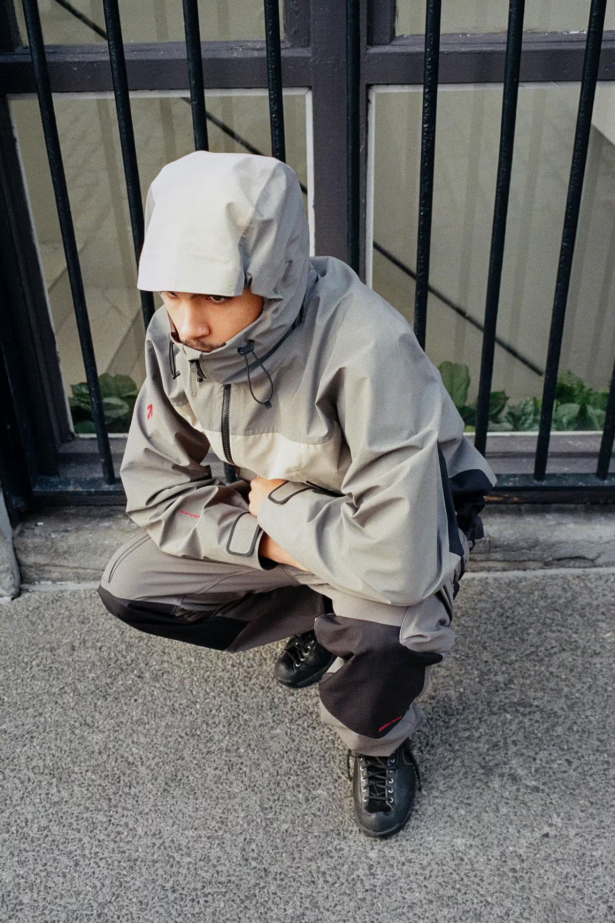 JJJJound と DESCENTE の最新コラボレーションでは、建設現場や日常のユーティリティウェアからヒントを得て、着やすいレイヤーのフルラインナップが誕生。
