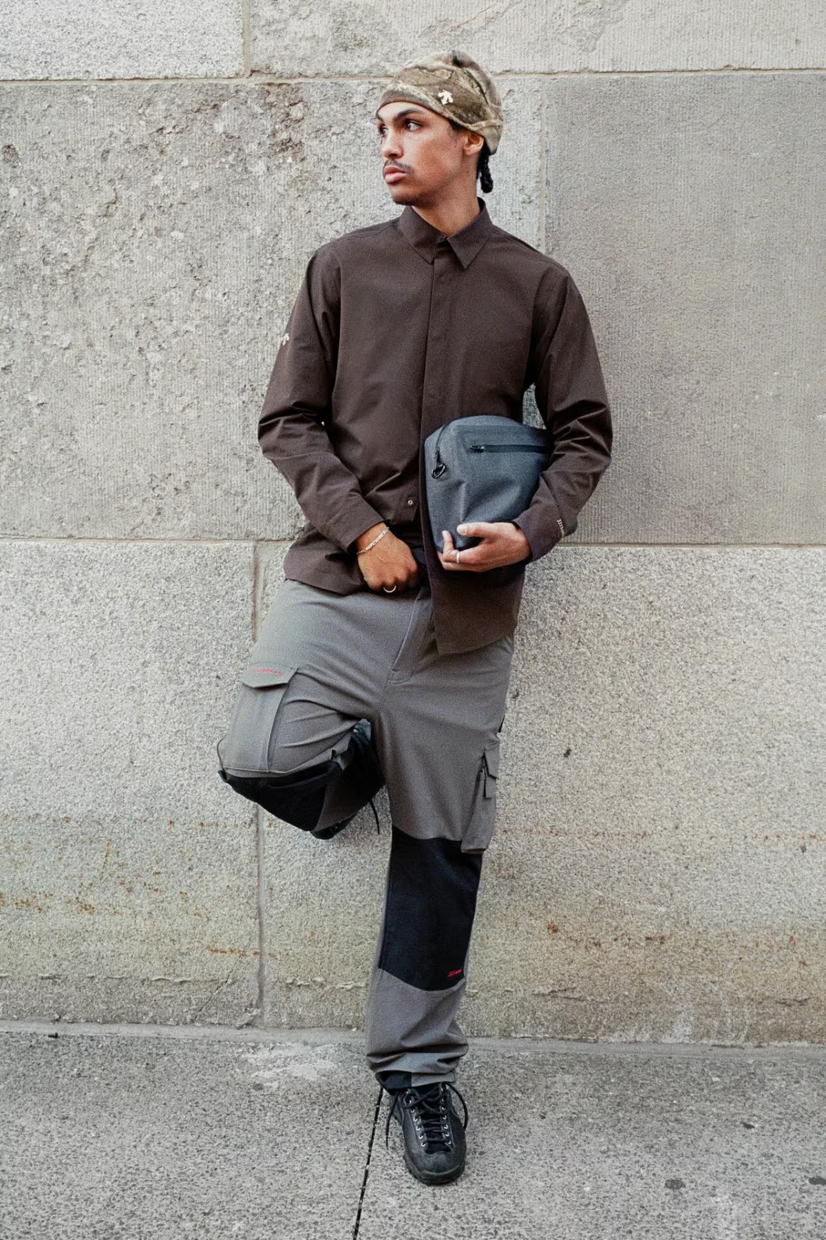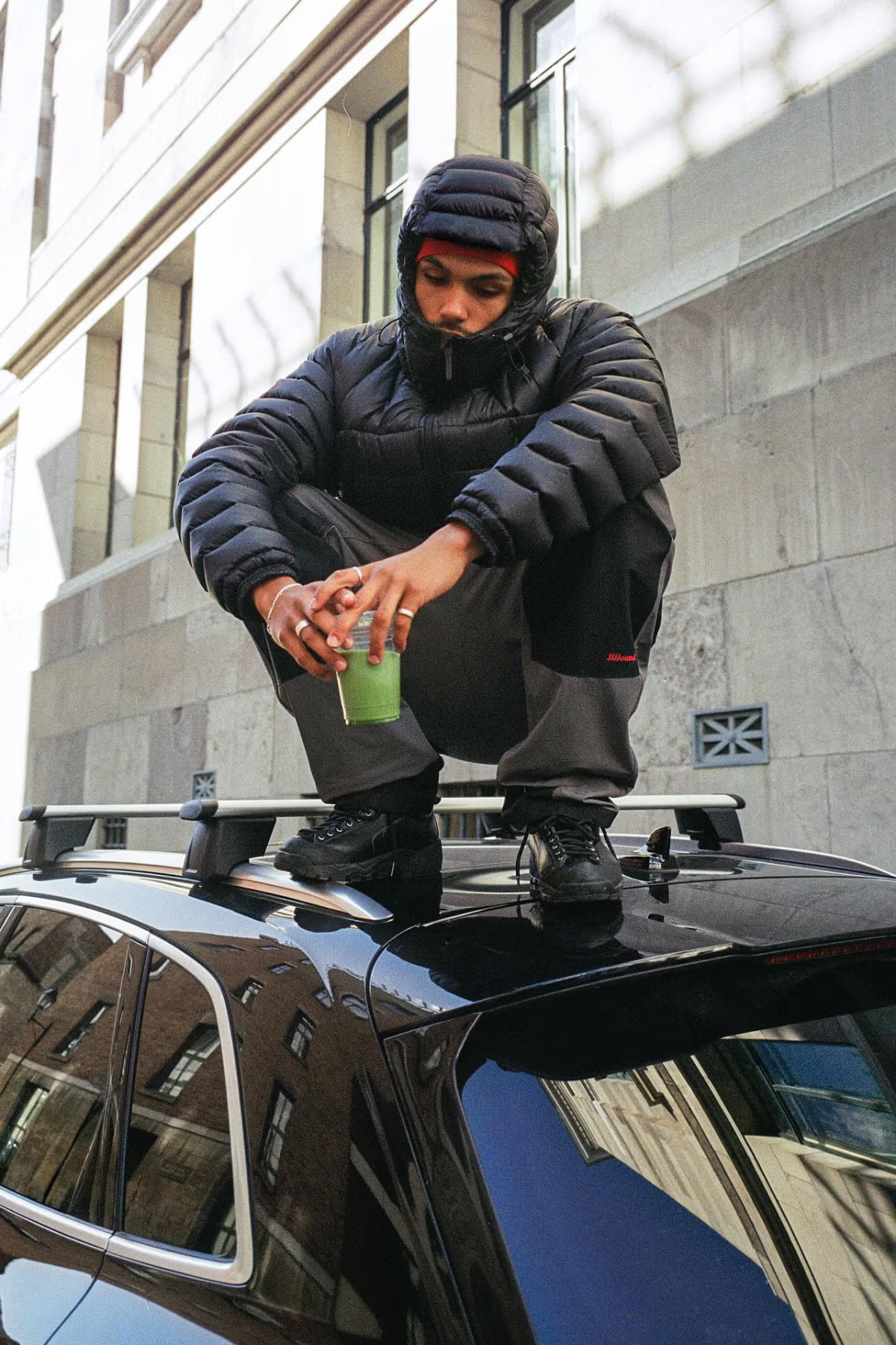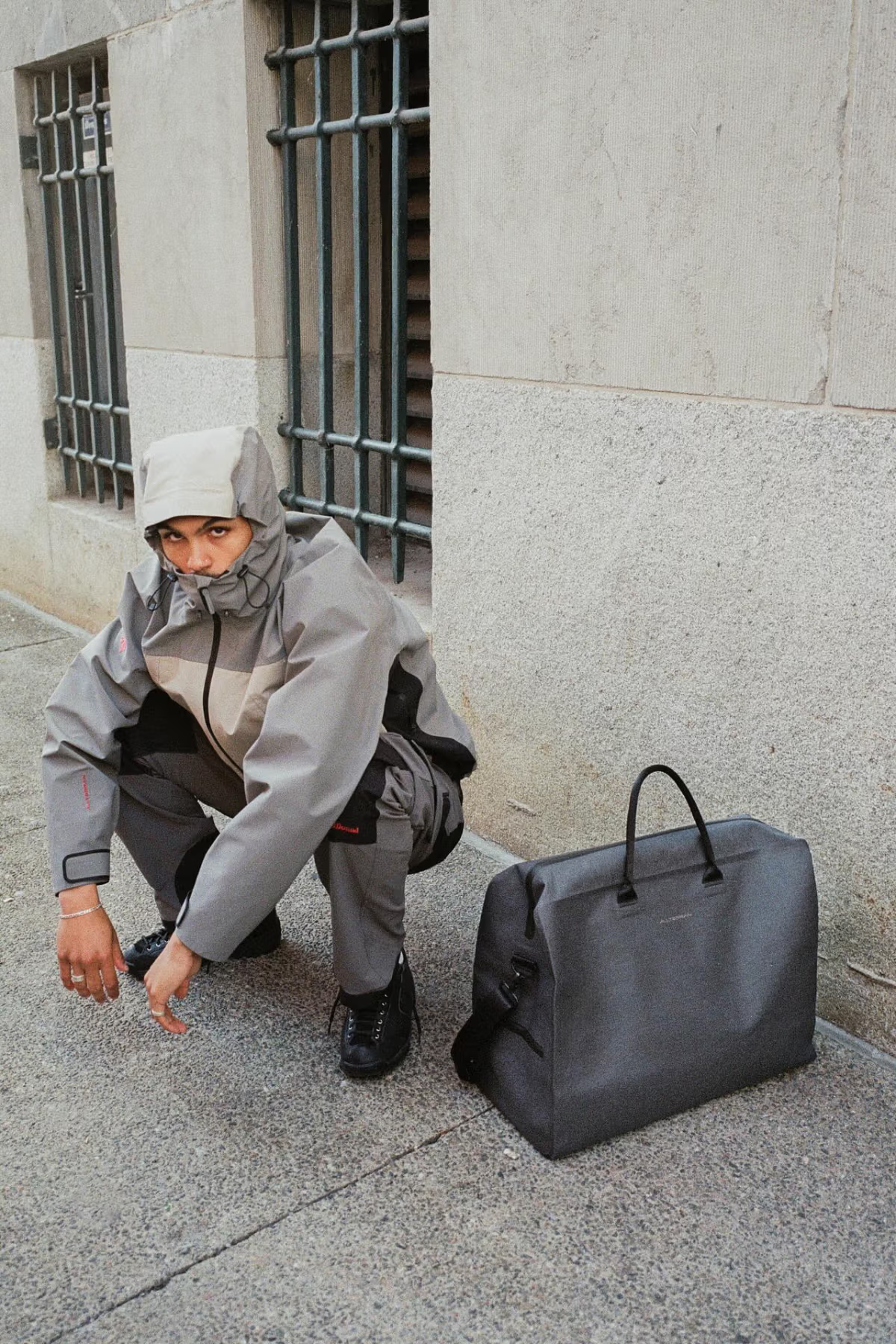 JJJJound と DESCENTE の最新コラボレーションでは、建設現場や日常のユーティリティウェアからヒントを得て、着やすいレイヤーのフルラインナップが誕生。