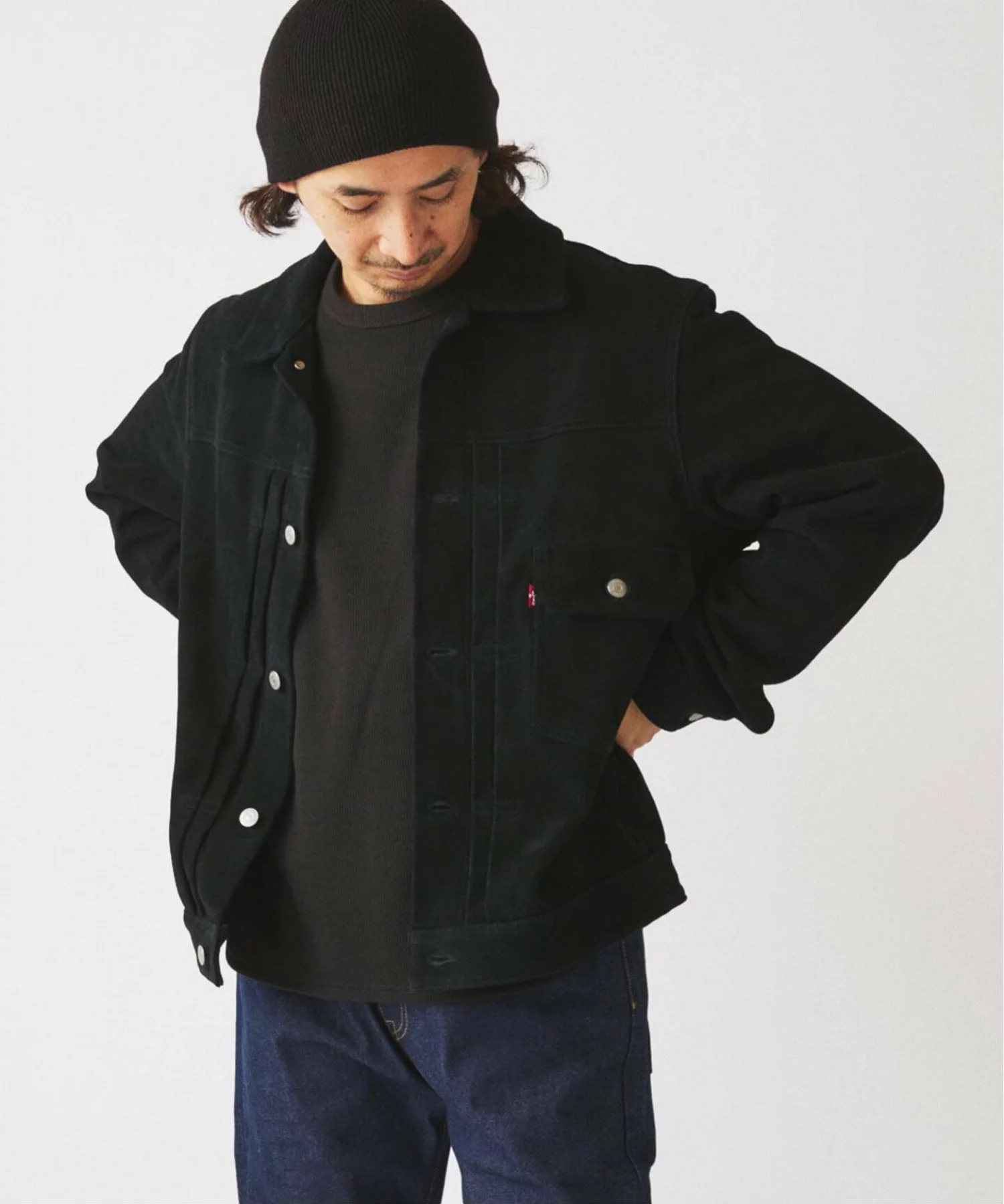Levi’s® の TYPE1トラッカージャケット を、「原型」には存在しないブラックスエードで再構築したスペシャルエディション。