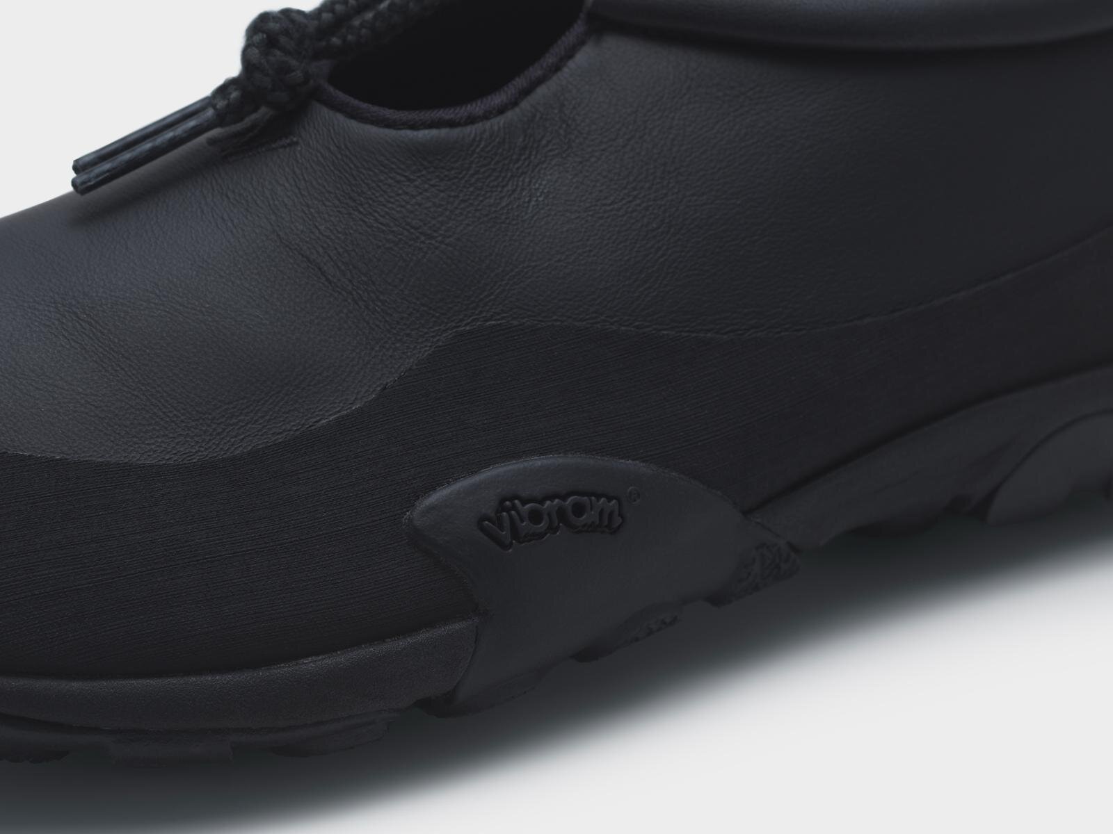 アッパーにはカウレザーを使用し、ワントーンカラーにすることでミニマルなスタイルに仕上げた。