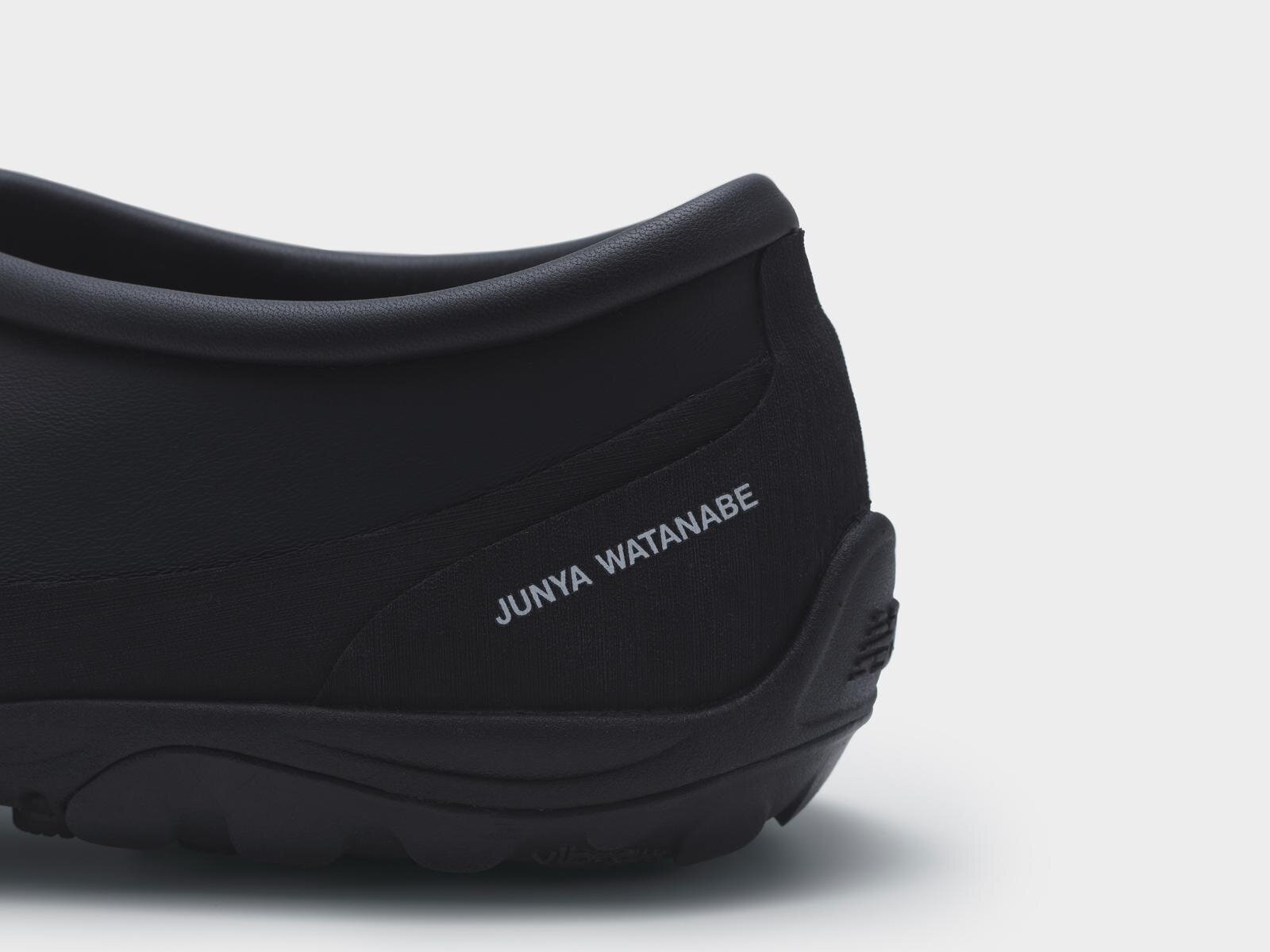 インソールには互いのブランドロゴをあしらい、ヒールに JUNYA WATANABE のロゴを配置。