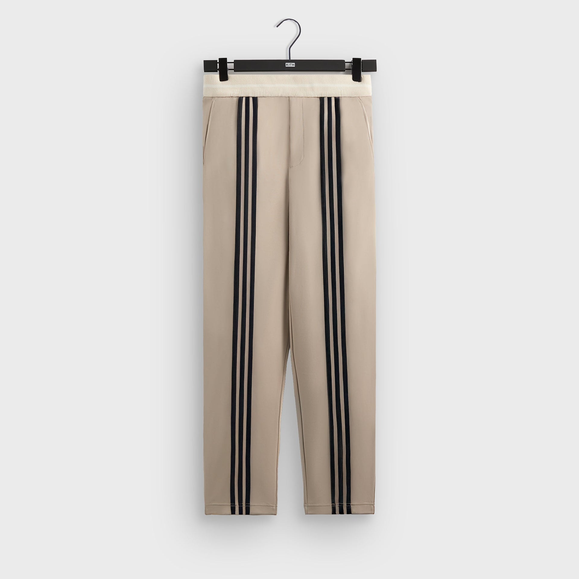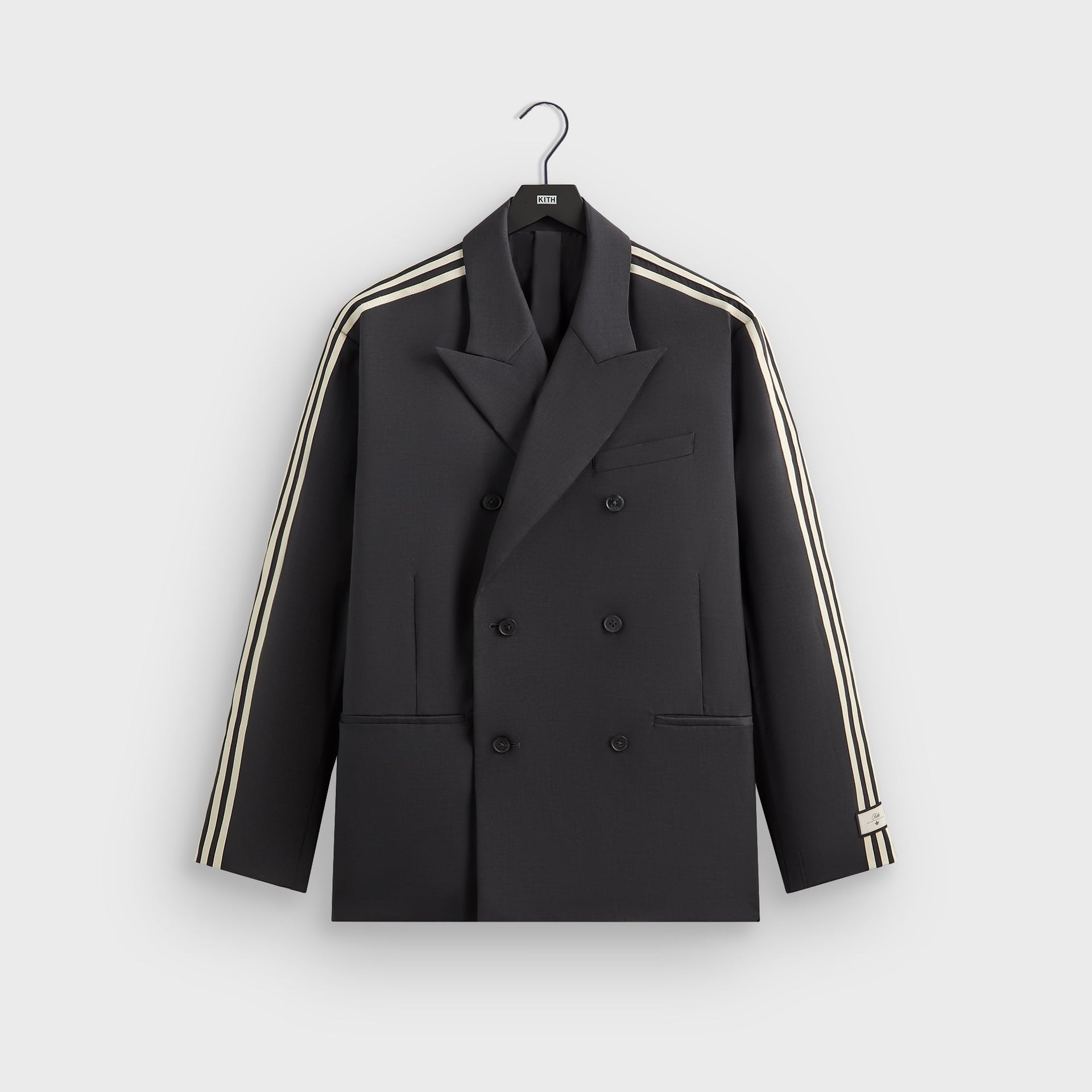 アパレルには、アディダス のシグネチャーストライプとラップアラウンドベルトをあしらったレザーのスタジアムコート、プレミアムウール混のテーラードスーツジャケット&パンツ、カスタムニットのディテールをあしらったベージュとグリーンのadidasトラックスーツ、ESPN のブランドロゴを落とし込んだフットボールジャージなどが並ぶ。