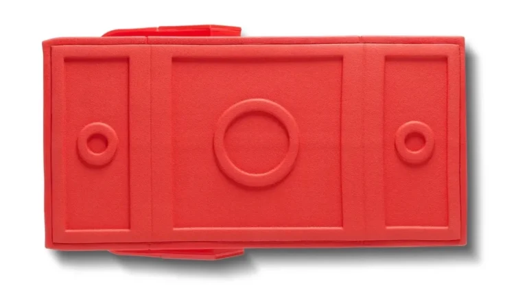 一方、ヒールは四角く伸びてレンガのような形状を強調し、そのコンセプトを最大限に体現した大胆なビジュアルを生み出している。