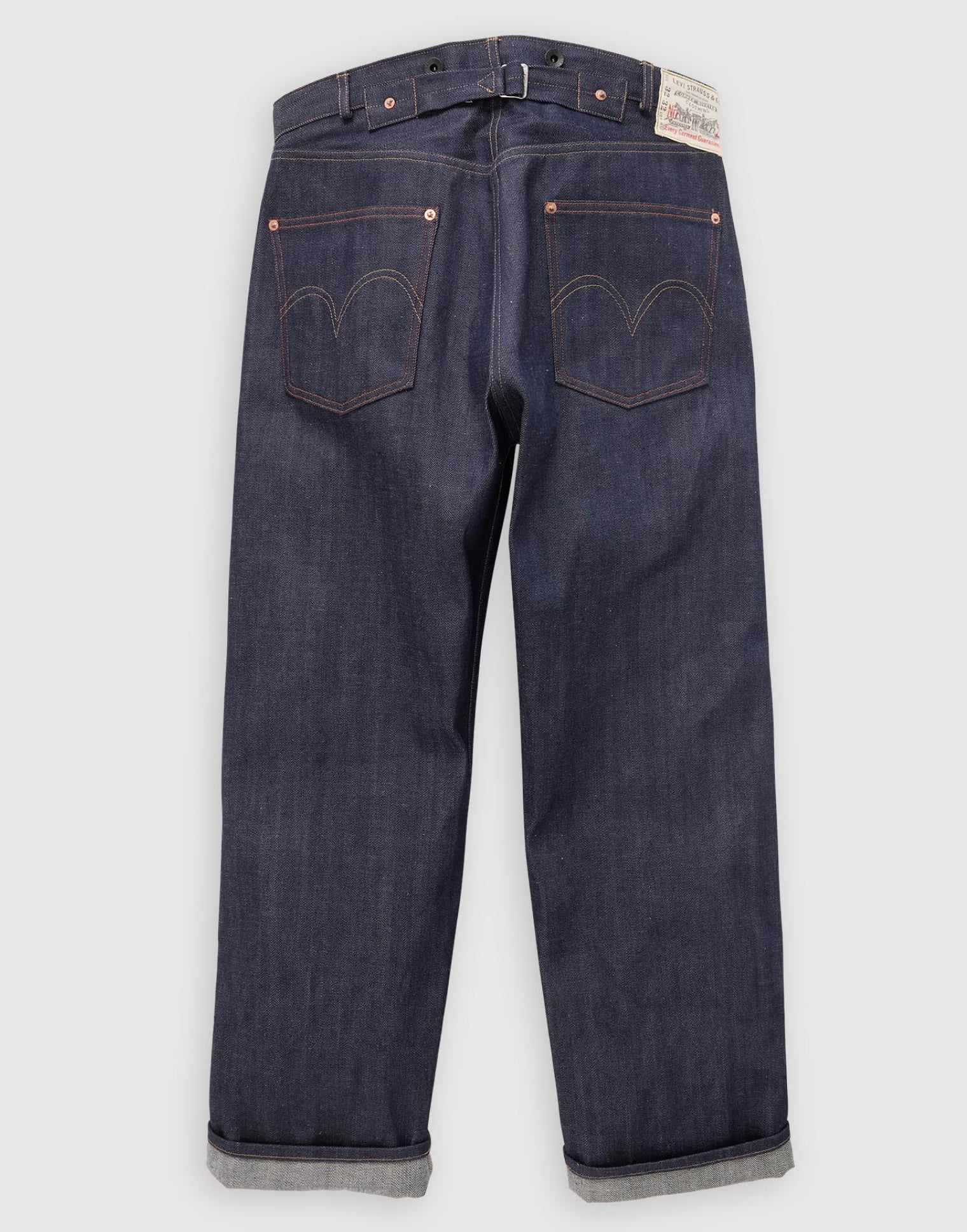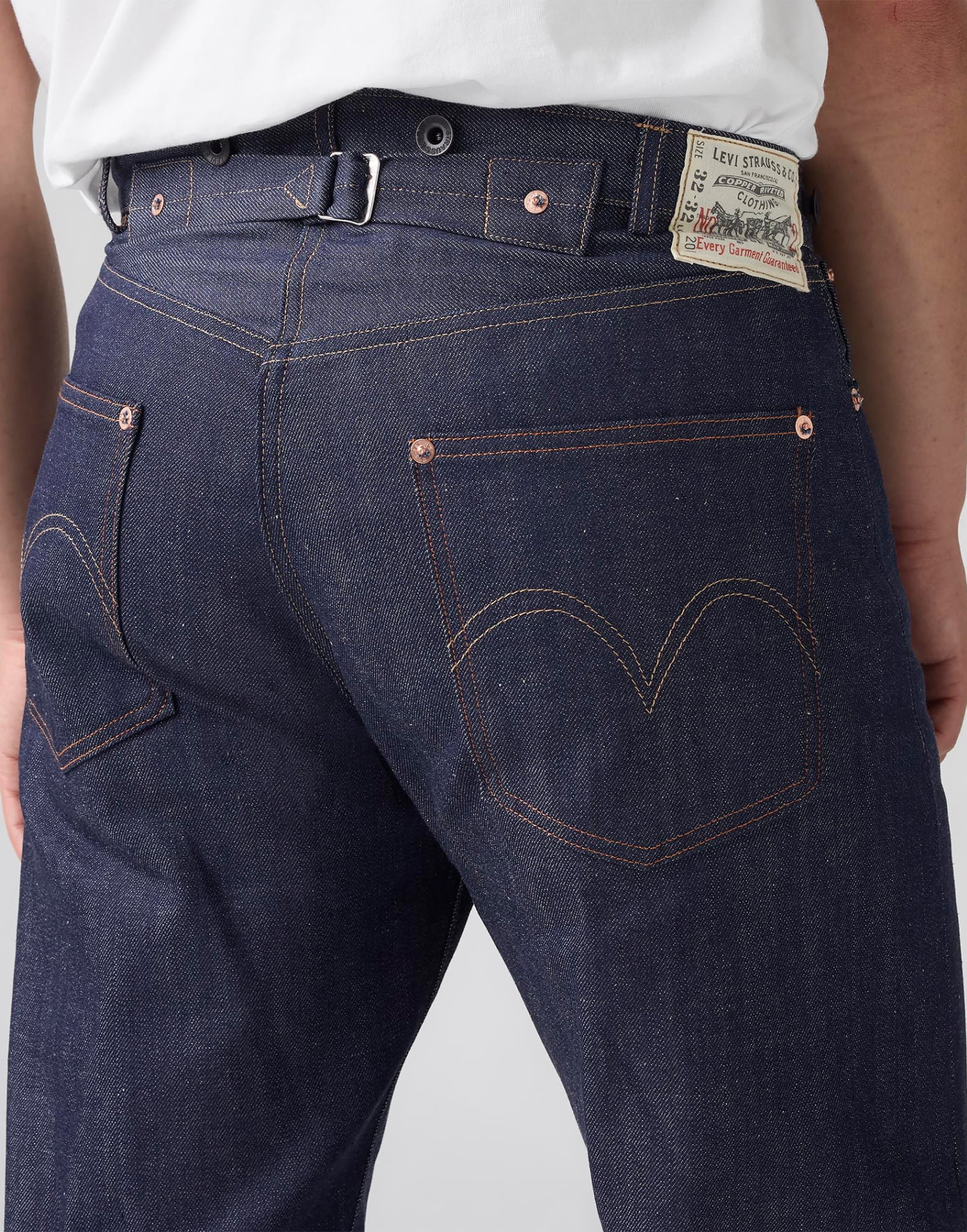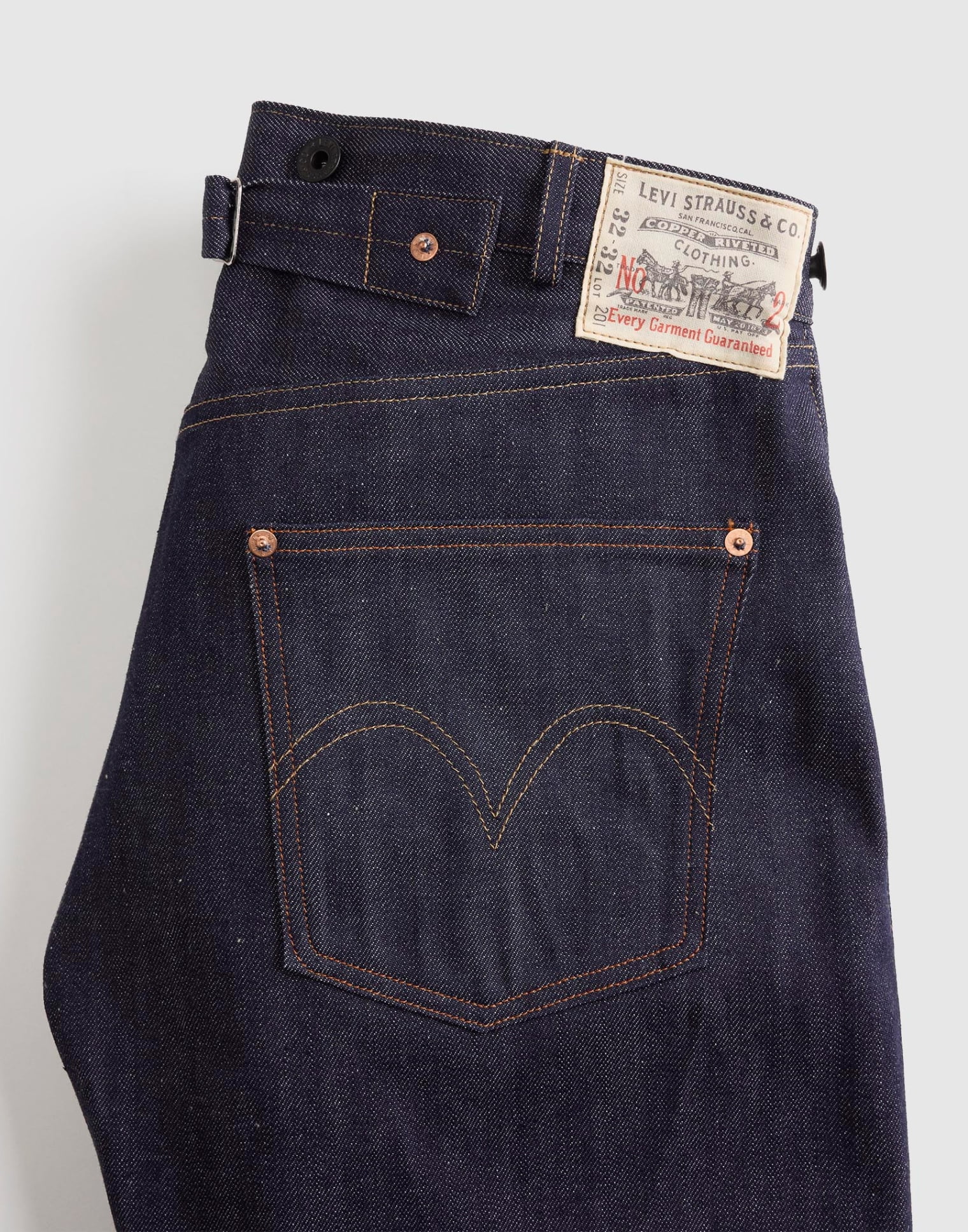 プレミアムな501®と同様、革新的なディテールの多くを踏襲しながらも、Lot 201は、レザーの代わりに布でツーホースのバックパッチを再現するなど、コスト削減のための改良が施された。