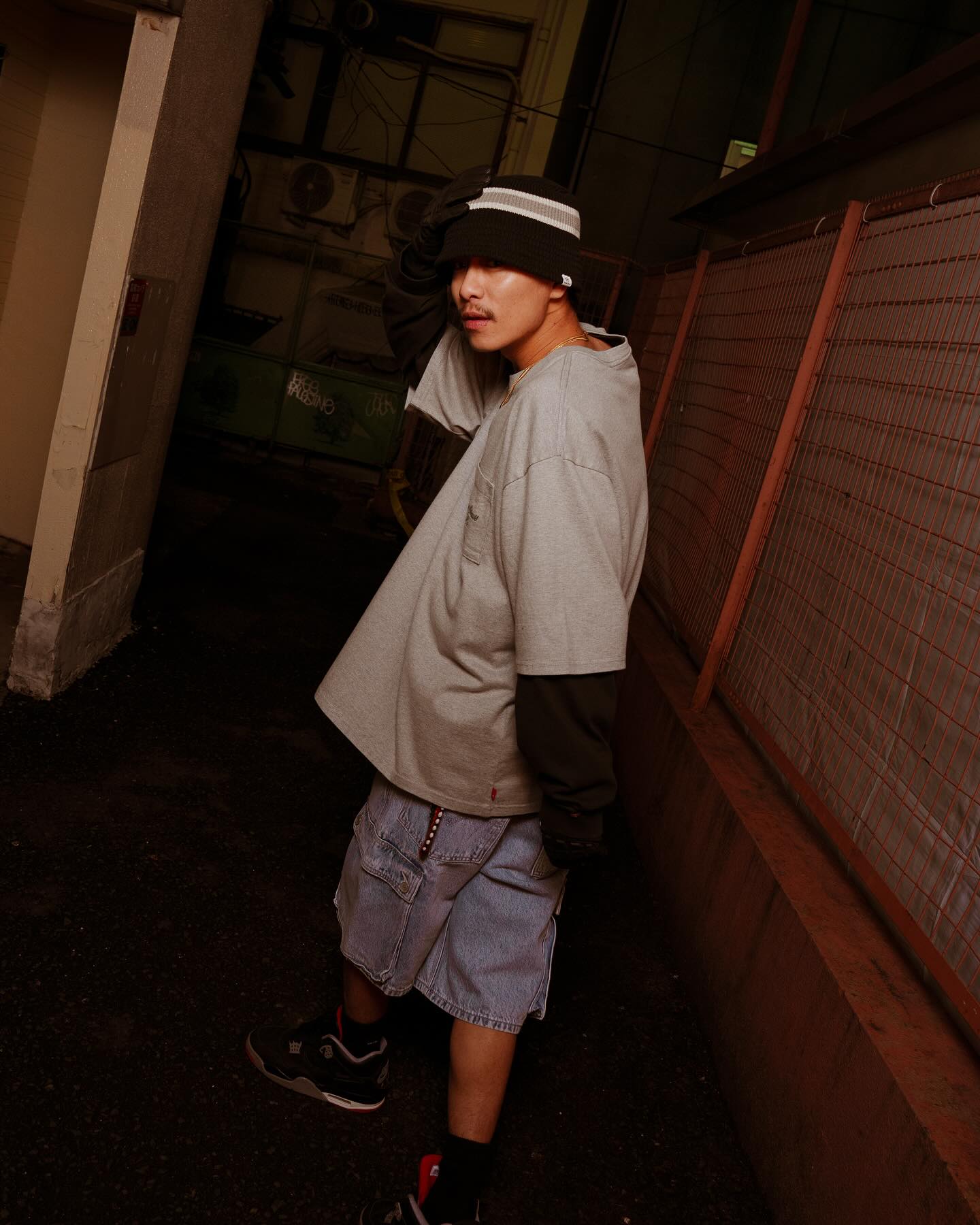ストリートシーンで流行りのバキーカーゴショートパンツ。