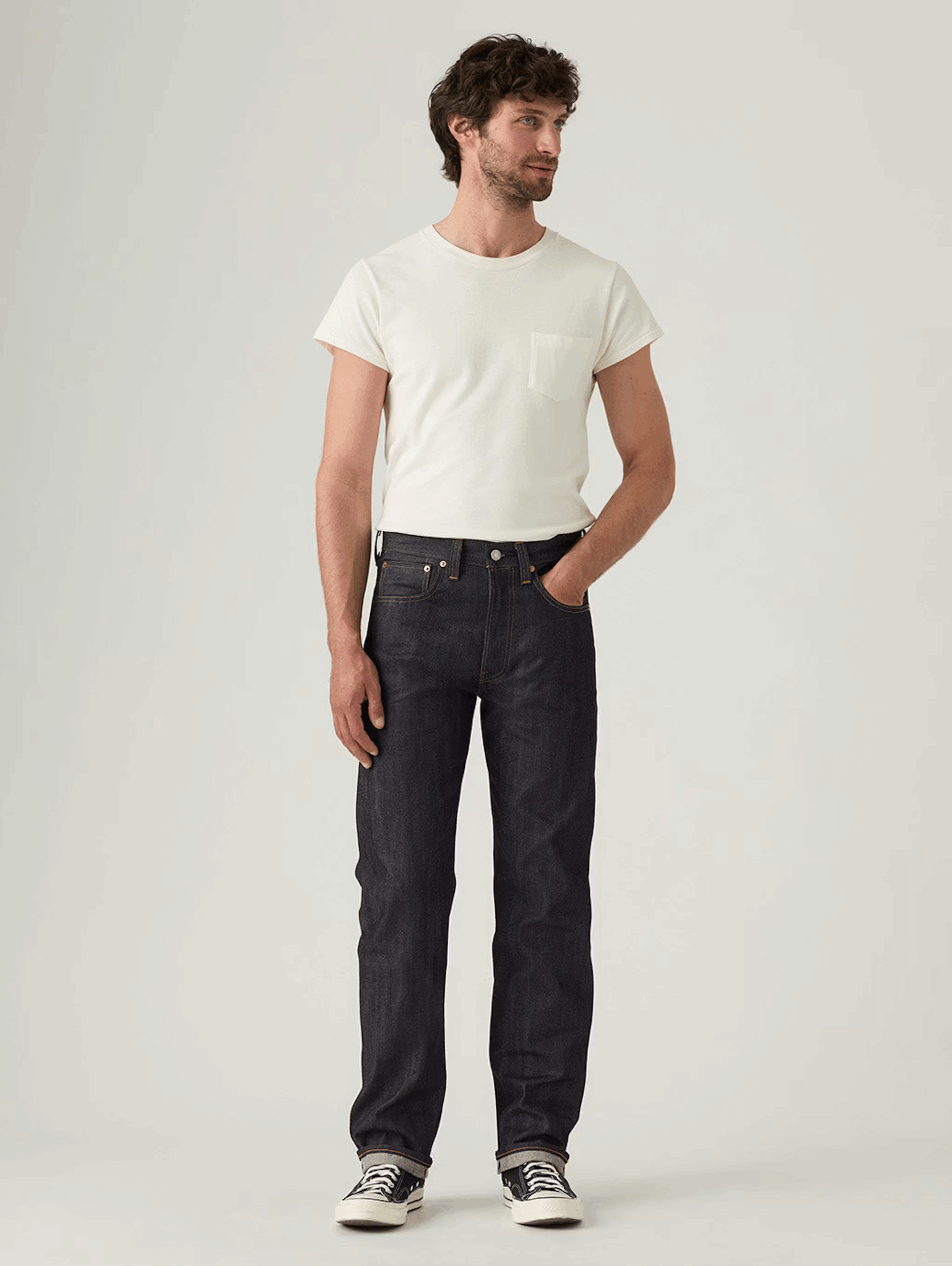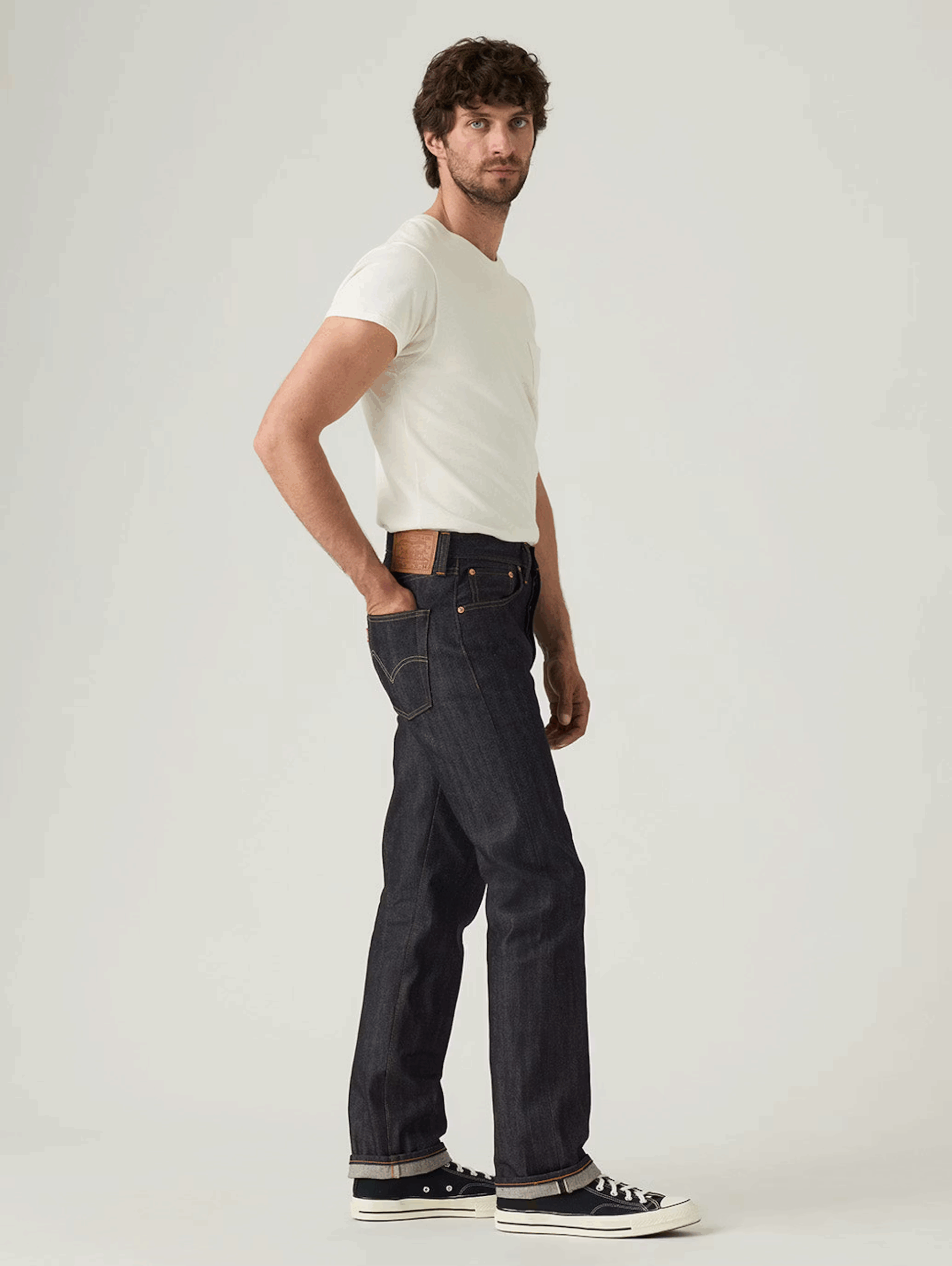 配給制度が終わり、ウォッチポケットリベットなどおなじみの501®のディテールが戻ってきたのと同時に、変わりゆく時代と中産階級の台頭を受けて、よりモダンでスリムなフィットとなり、シンチやサスペンダーボタンなどの余分なディテールを削ぎ落としたデザインに進化した。