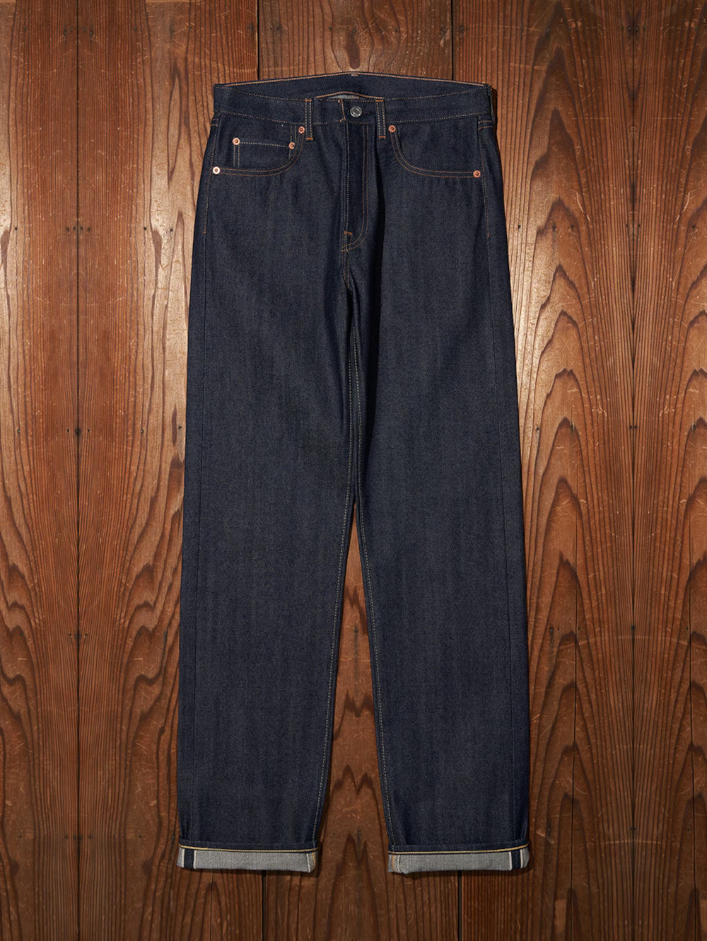 フィットは、上部に丸みがあり、レッグはテーパードのシルエットとなっている。
