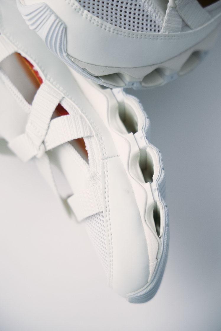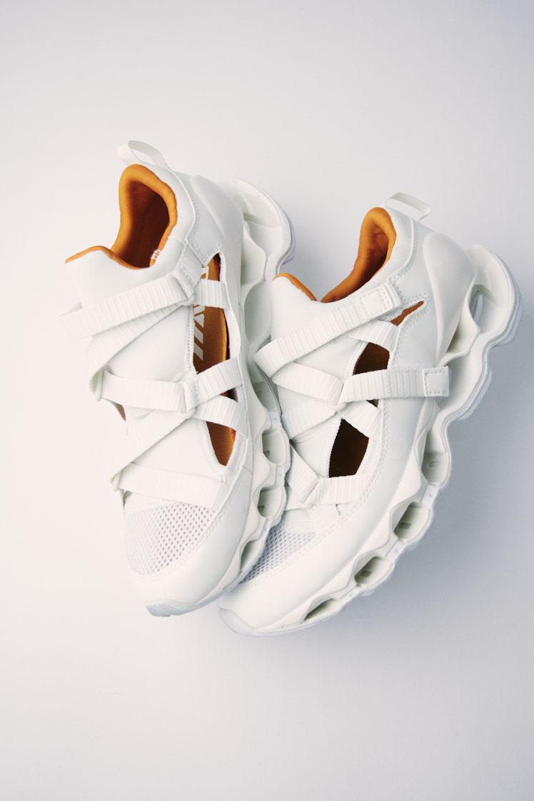 WAVE PROPHECY STRAP のアッパーデザインは、陸上のスプリントスパイクから想起させている。