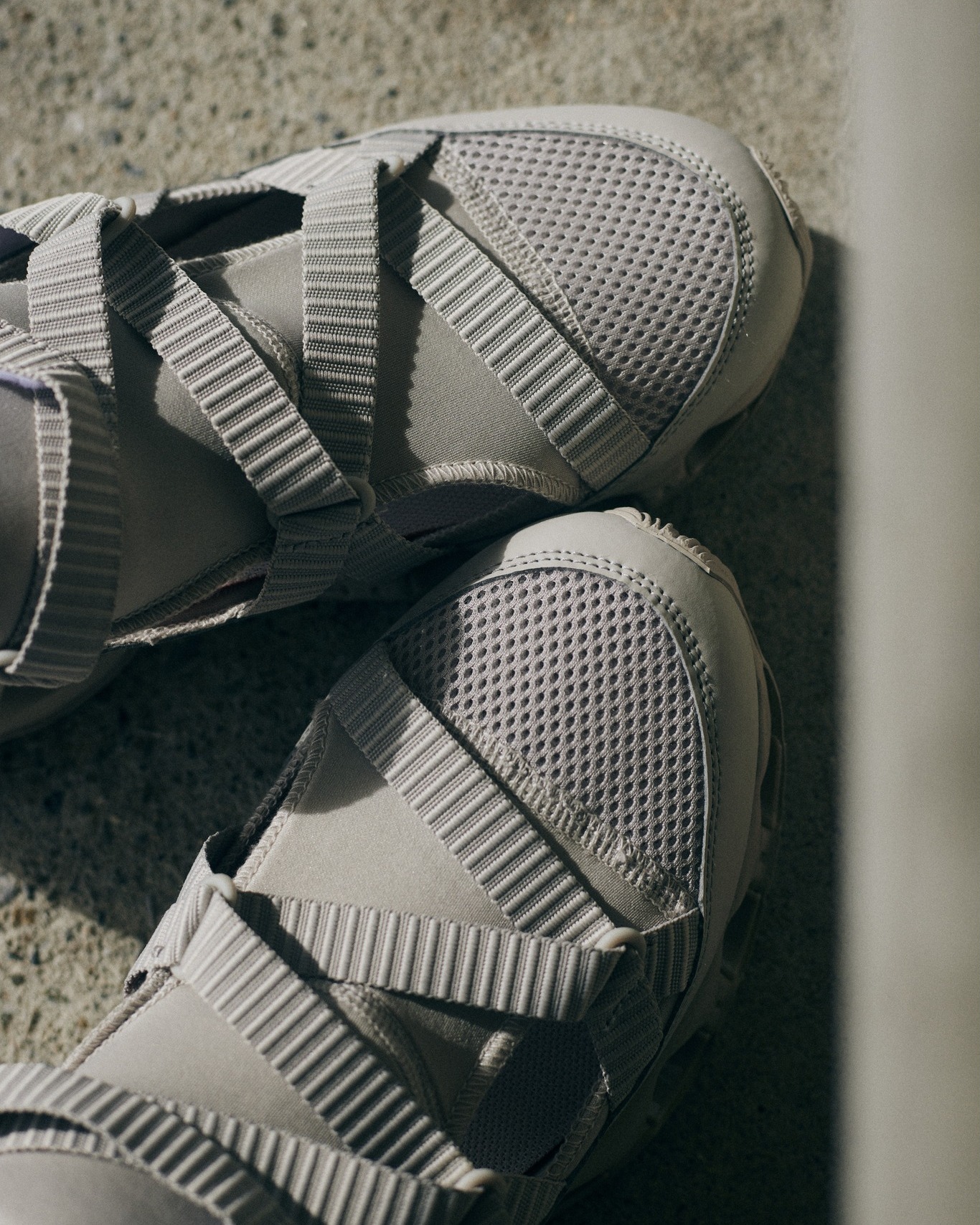 従来より厚みを持たせ凹凸のあるストラップ テープに変更する事で、強度やフィッティングを高めるとともに、シンプルながら存在感のあるモデルへとアップデートを施した。