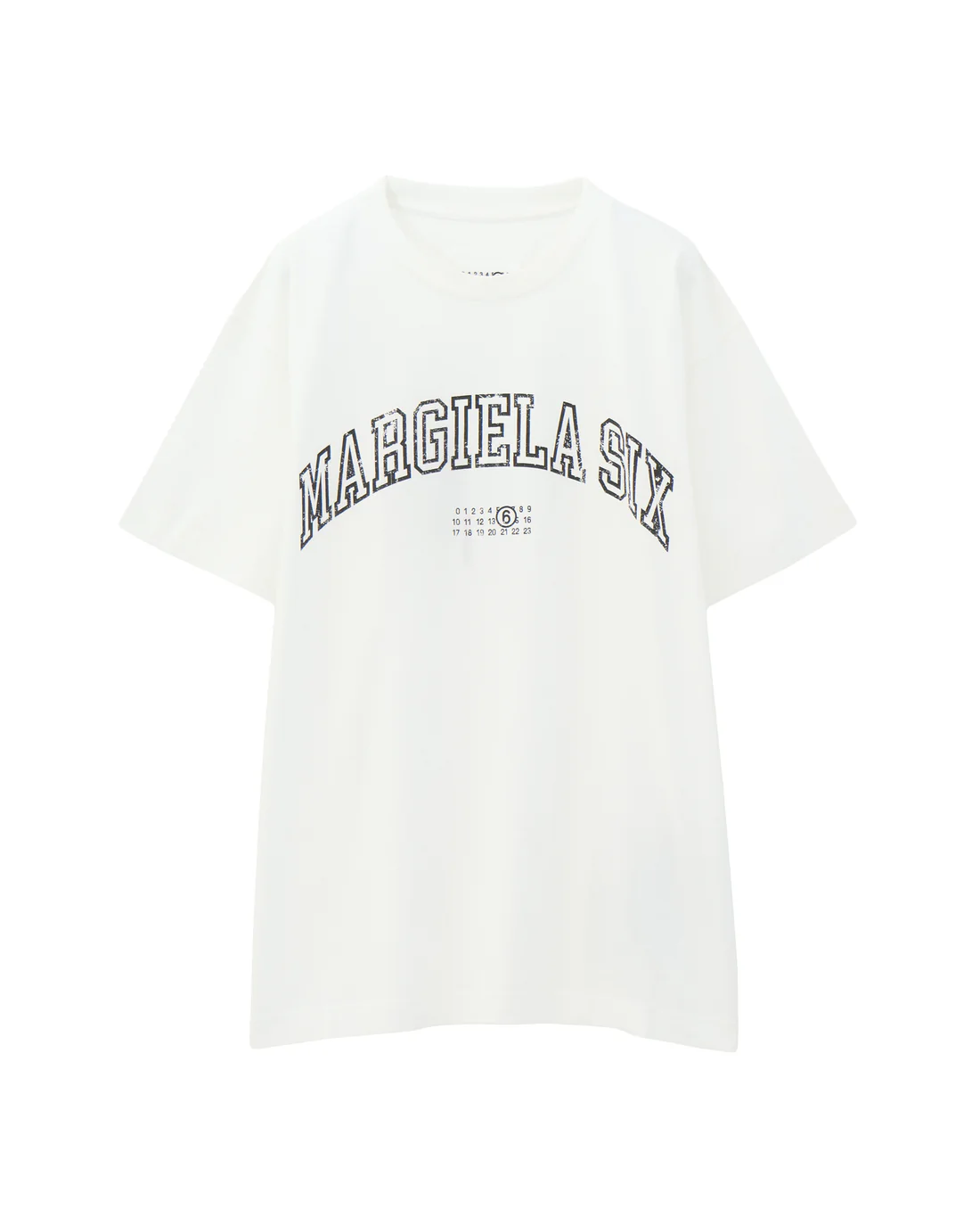 バーシティプリントと MM6 の象徴的なNumericロゴを組み合わせた、大胆ながらも控えめなデザインのコットンジャージーTシャツ。