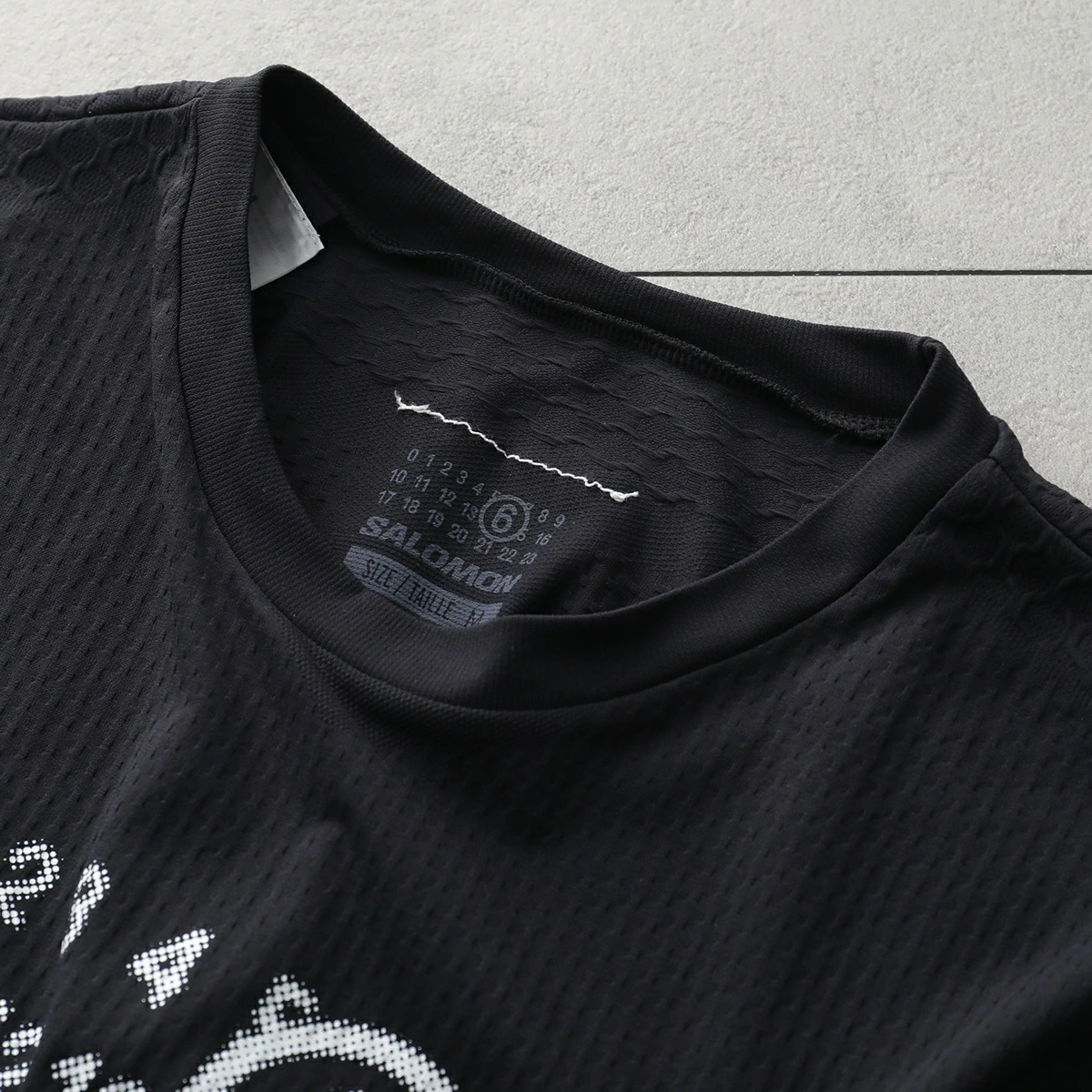 MM6のミニマルなデザイン言語とSALOMONの技術的専門知識を融合させたシームレスTシャツ。