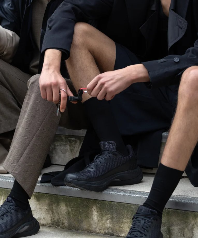 空気力学的な形状とレイヤードされたディテールが彫刻的な効果を演出し、MM6の現代的なシューズのアバンギャルドなアプローチを生み出している。