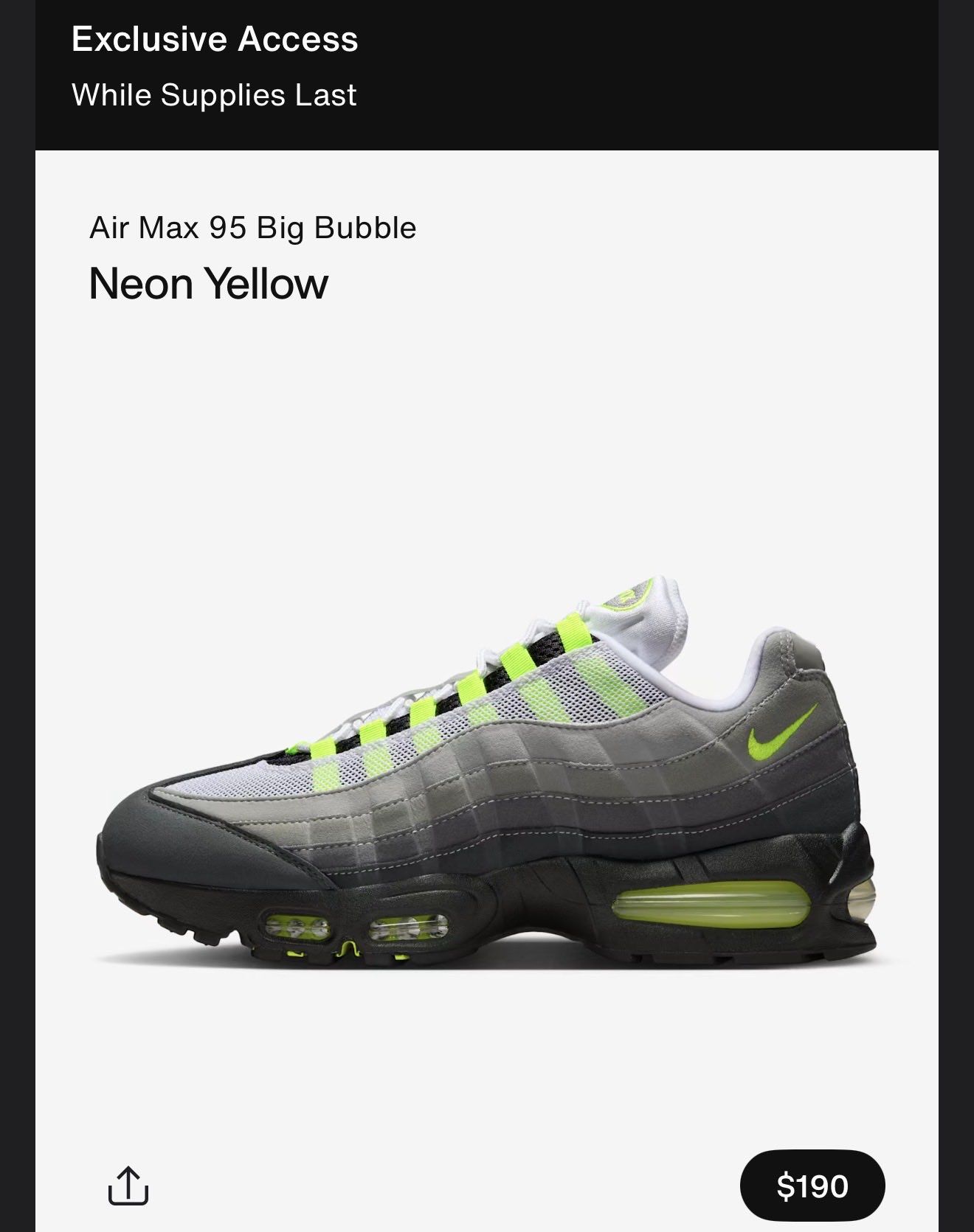 NIKE AIR MAX 95 OG BIG BUBBLE “Neon” が来週 SNKRS にて先行販売か。