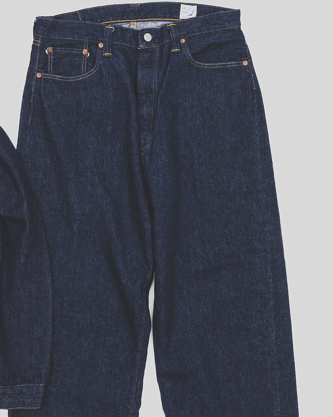 BEAMS JAPAN が別注したのは、極太シルエットの 100 super dad fitに通常よりライトな10ozオンスのセルビッチデニムを採用し、柔らかく快適な着用感を実現したパンツと、同素材のデニムジャケット。