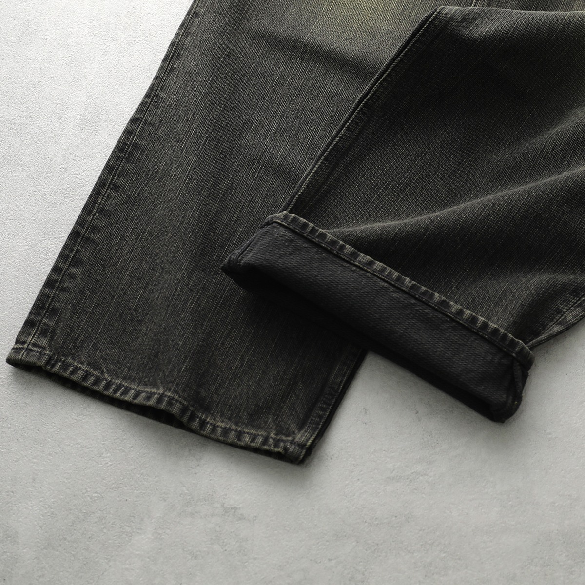 ヴィンテージサンドウォッシュ加工を施したデニムパンツ。