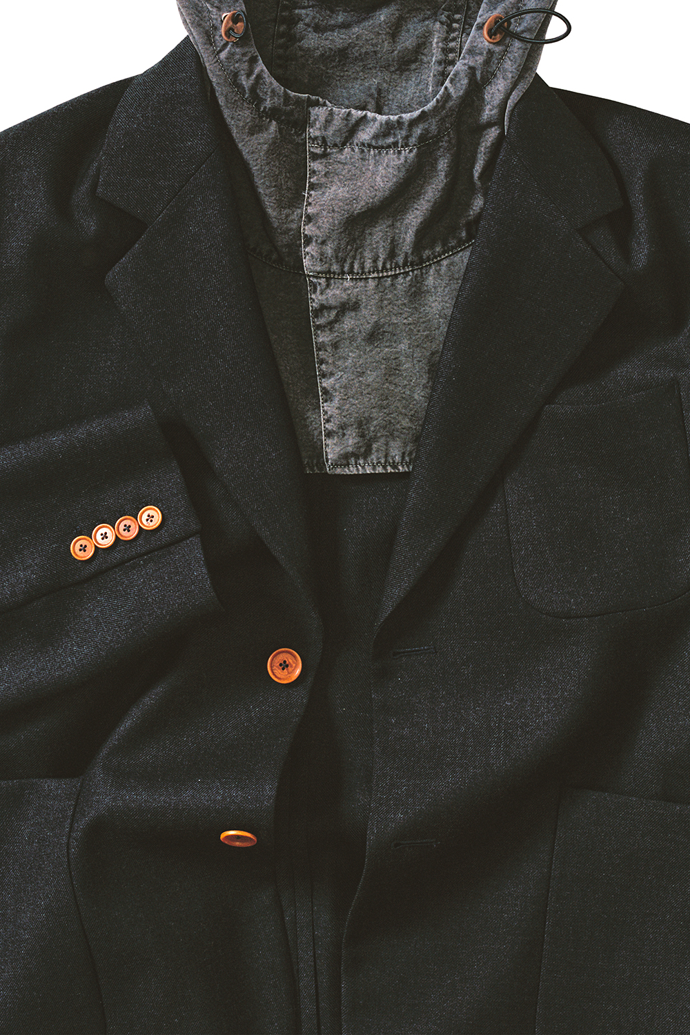 ピグメント染めのフィールドジャケット、パーカ、レザーアノラック、伝統的なスーツ、ボタンダウンシャツなど全15型を展開。
