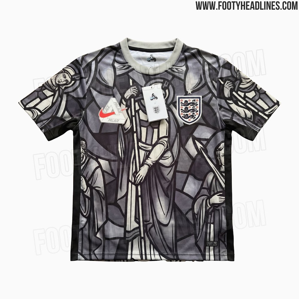 右胸には PALACE と NIKE の象徴的なロゴをミックスしたグラフィックを配置し、左胸にはイングランドサッカー協会のエンブレムに描かれる「3頭の獅子」である「スリーライオンズ」がデザイン。
