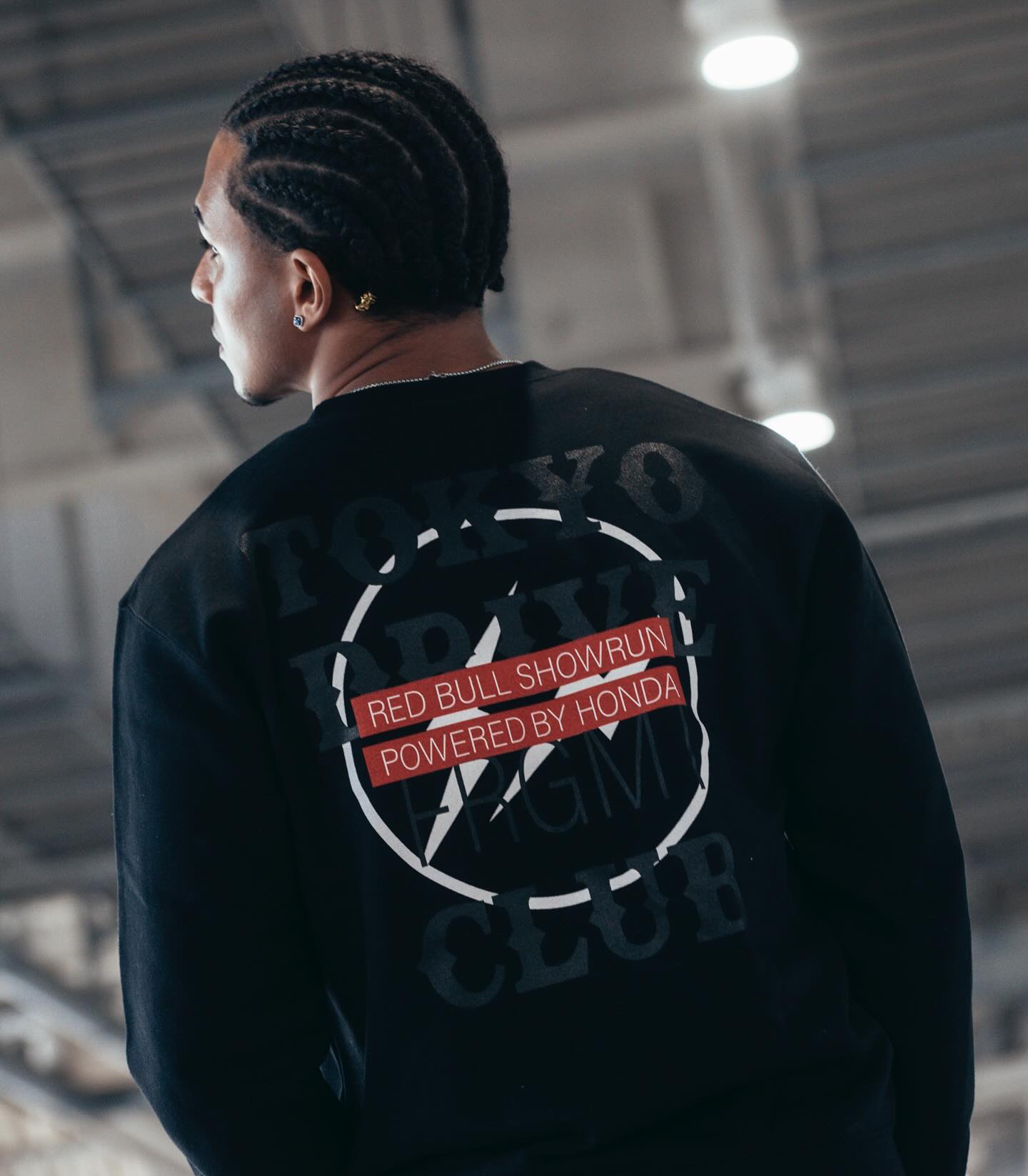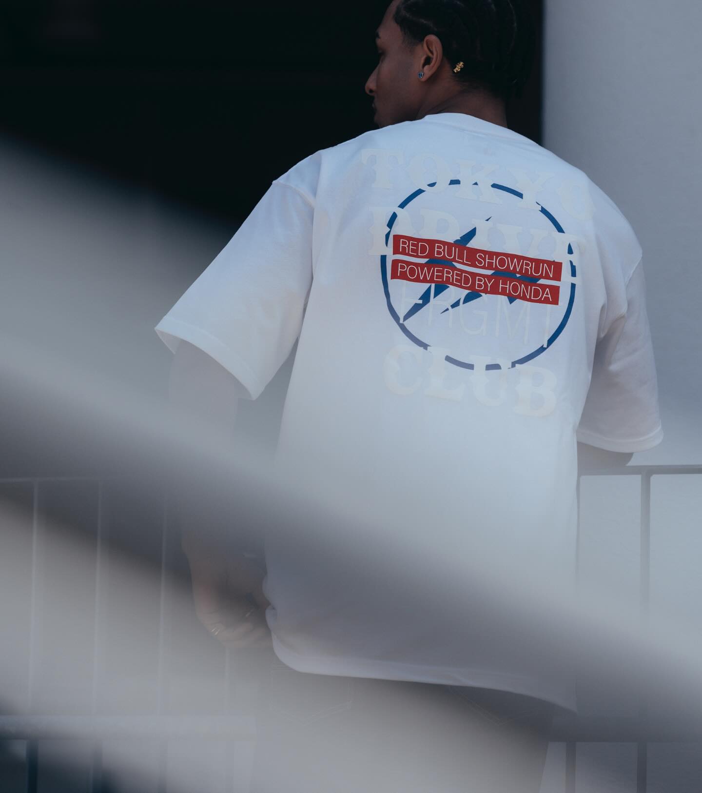 Event lineでは、“Red Bull Showrun x Powered by Honda”のロゴやTokyoDriveCarClubとFRGMTのグラフィックがバックに落とし込まれたTシャツ、スウェットシャツ、フーディー(16,500円)の3型がラインアップ。