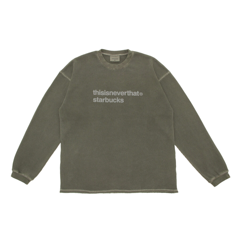 ウェアには thisisneverthat® を象徴するワッフル素材やコットンジャージーを取り入れ、ガーメントウォッシュやピグメント染めを用い、着込んだような風合いを表現。