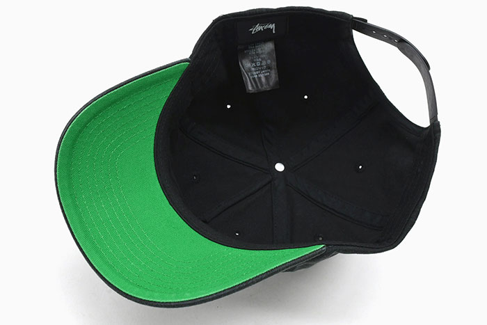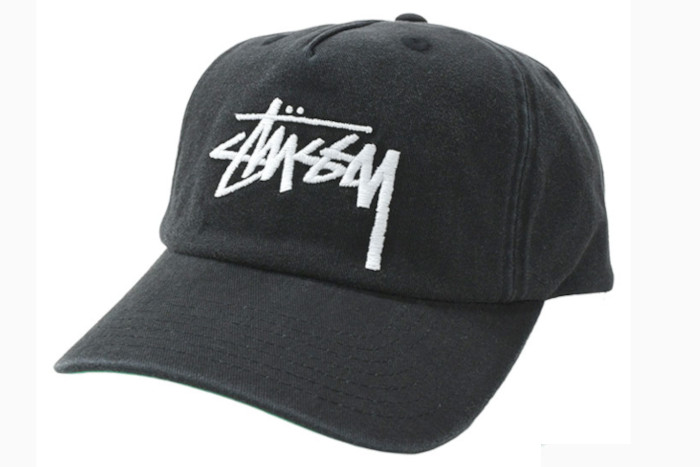 Stüssy のアイコン「ストックロゴ」をビッグサイズで刺繍したスナップバックキャップ。